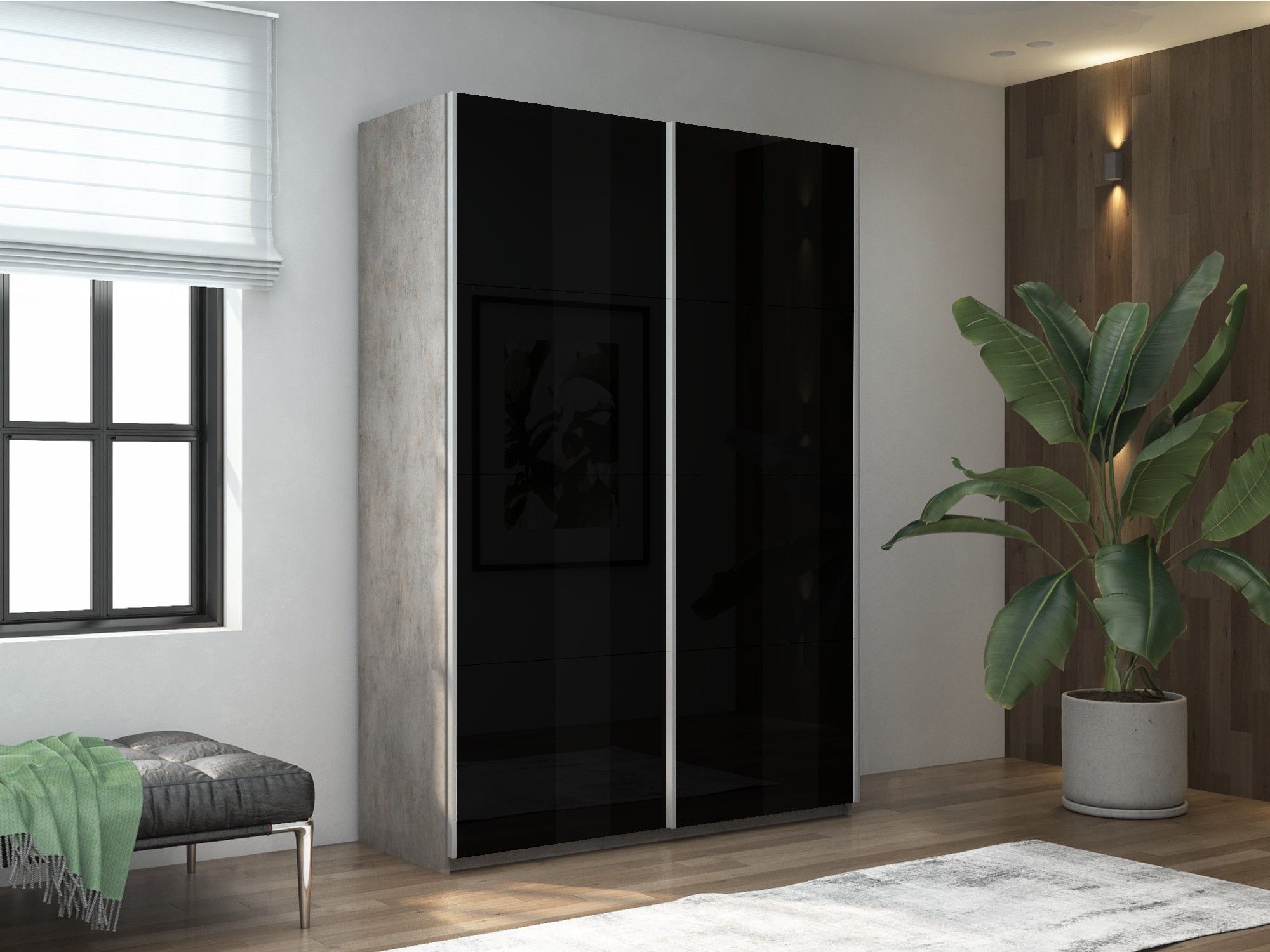 Шкаф-купе Прайм 2-х дверный Стекла черные/Доводчики 120х57х230 (бетон)