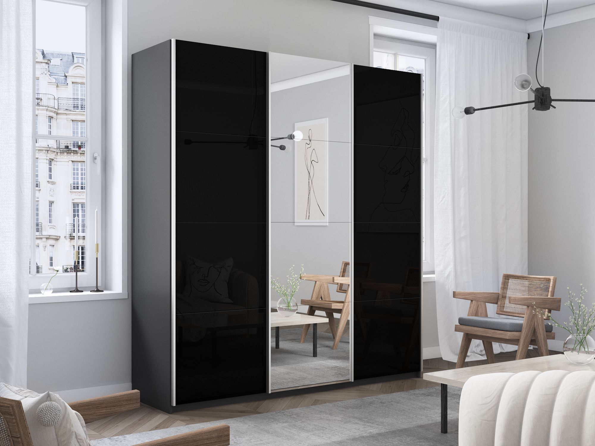 Шкаф-купе Прайм 3-х дверный Стекла черные/Зеркало/Доводчики 210х57х230 (Серый диамант)