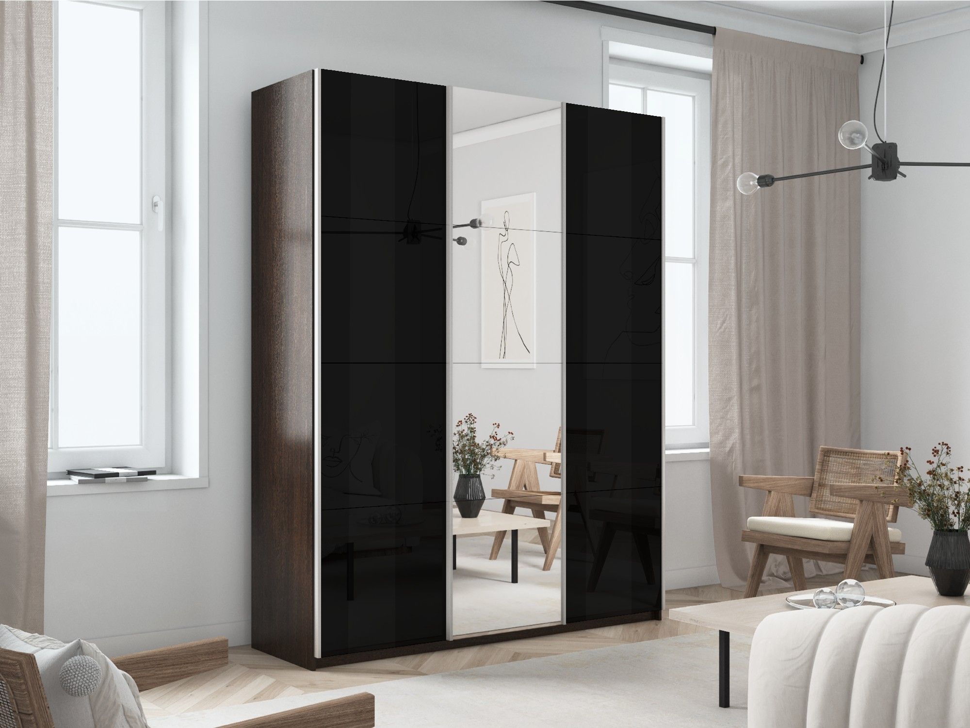 Шкаф-купе Прайм 3-х дверный Стекла черные/Зеркало/Доводчики 210х57х230 (Венге)