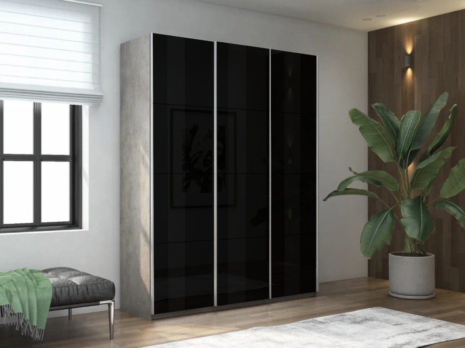 Шкаф-купе Прайм 3-х дверный Стекла черные/Доводчики 180х57х230 (бетон)