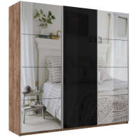 Шкаф-купе Прайм 3-х дверный Зеркала/Стекло черное/Доводчики 180х57х230 (Дуб/крафт/табак)