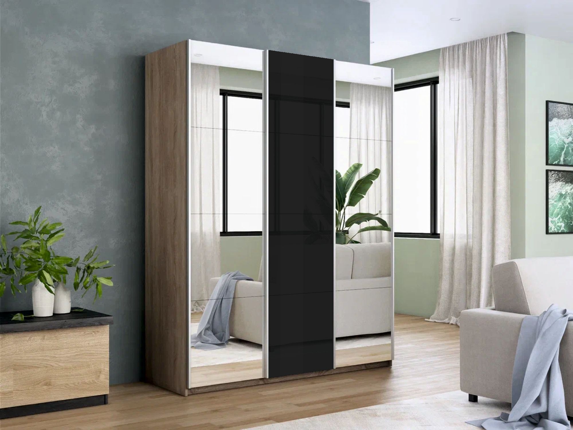 Шкаф-купе Прайм 3-х дверный Зеркала/Стекло черное/Доводчики 210х57х230 (Дуб сонома)
