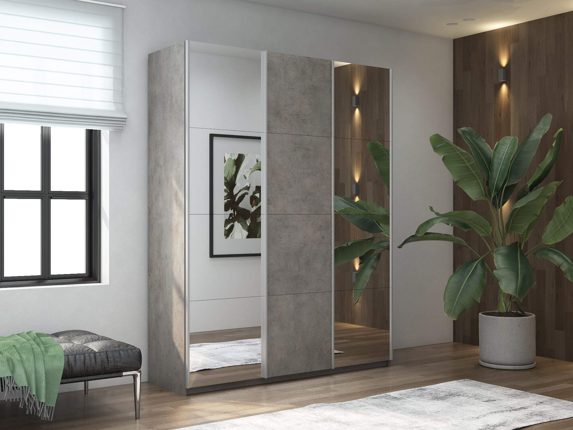Шкаф-купе Широкий Прайм 3-х дверный Зеркала/ДСП/Доводчики 240х57х230 (бетон)