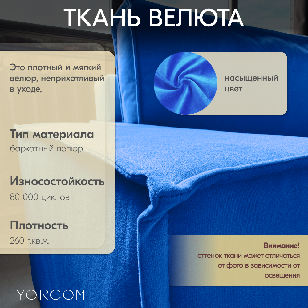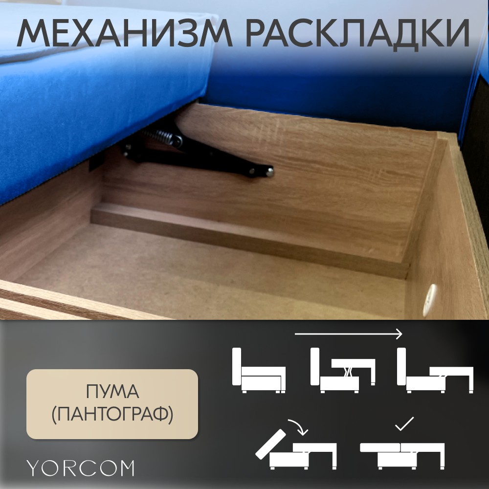 Обивка выполнена из качественных тканей, которые обеспечивают долговечность и простоту ухода.