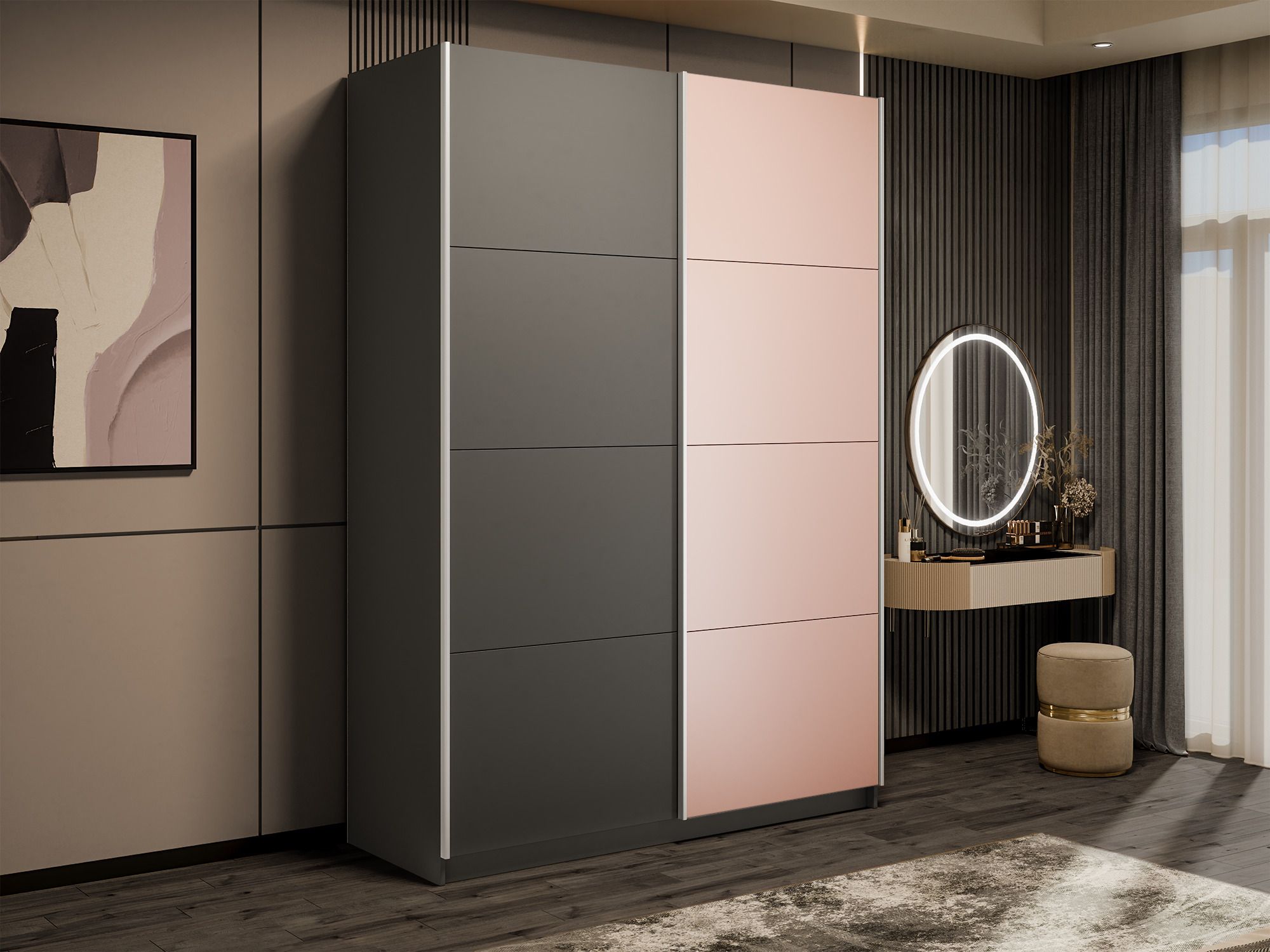 Серия «Прайм» – это шкафы-купе для одежды с эстетичным и изысканным внешним видом, который достигается благодаря применению навесной системы крепления дверей-купе Hettich Top Line M со скрытым верхним ходовым профилем, данная система обеспечивает плавный ход фасадов. Каждая дверь поделена на 4 секции, которые можно устанавливать в произвольном порядке, создавая каждый раз новый дизайн фасада. Идеально подойдет не только к вашему спальному гарнитуру, прихожей и детской, но и будет гармонично сочетаться со всеми элементами мебели. Не займет много места, но позволит вместить большое количество вещей. Внутреннее наполнение шкафа позволяет вместить не только верхнюю одежду и обувь, но и аксессуары. А удобное разделение секций поможет грамотно разместить все вещи в шкафу. В шкафу-купе «Прайм» используется высококачественная фурнитура немецкого концерна Hettich, это обеспечит вам комфортное и долгое использование гардероба.