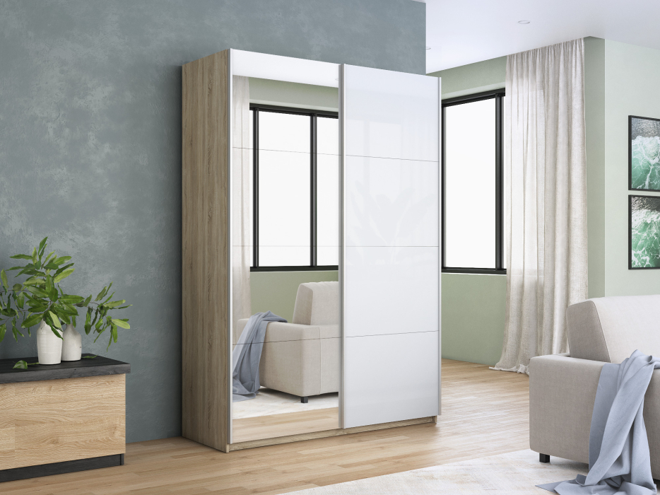 Отзывы о Столплит Шкаф-купе Прайм 2х дверный Зеркало/Белый Глянец 120х57х230 Дуб Сонома