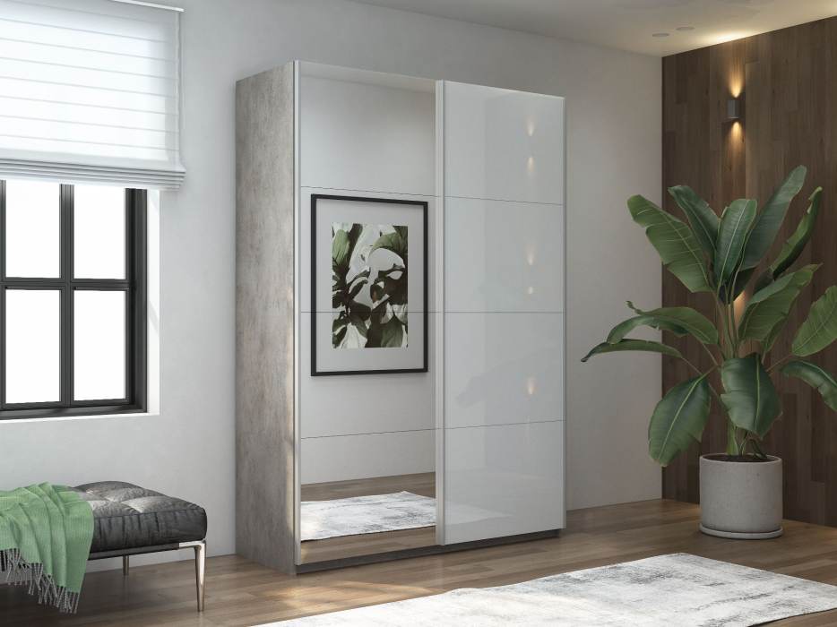 Шкаф-купе Прайм 2х дверный Зеркало/Белый Глянец 160х57х230 (Бетон)