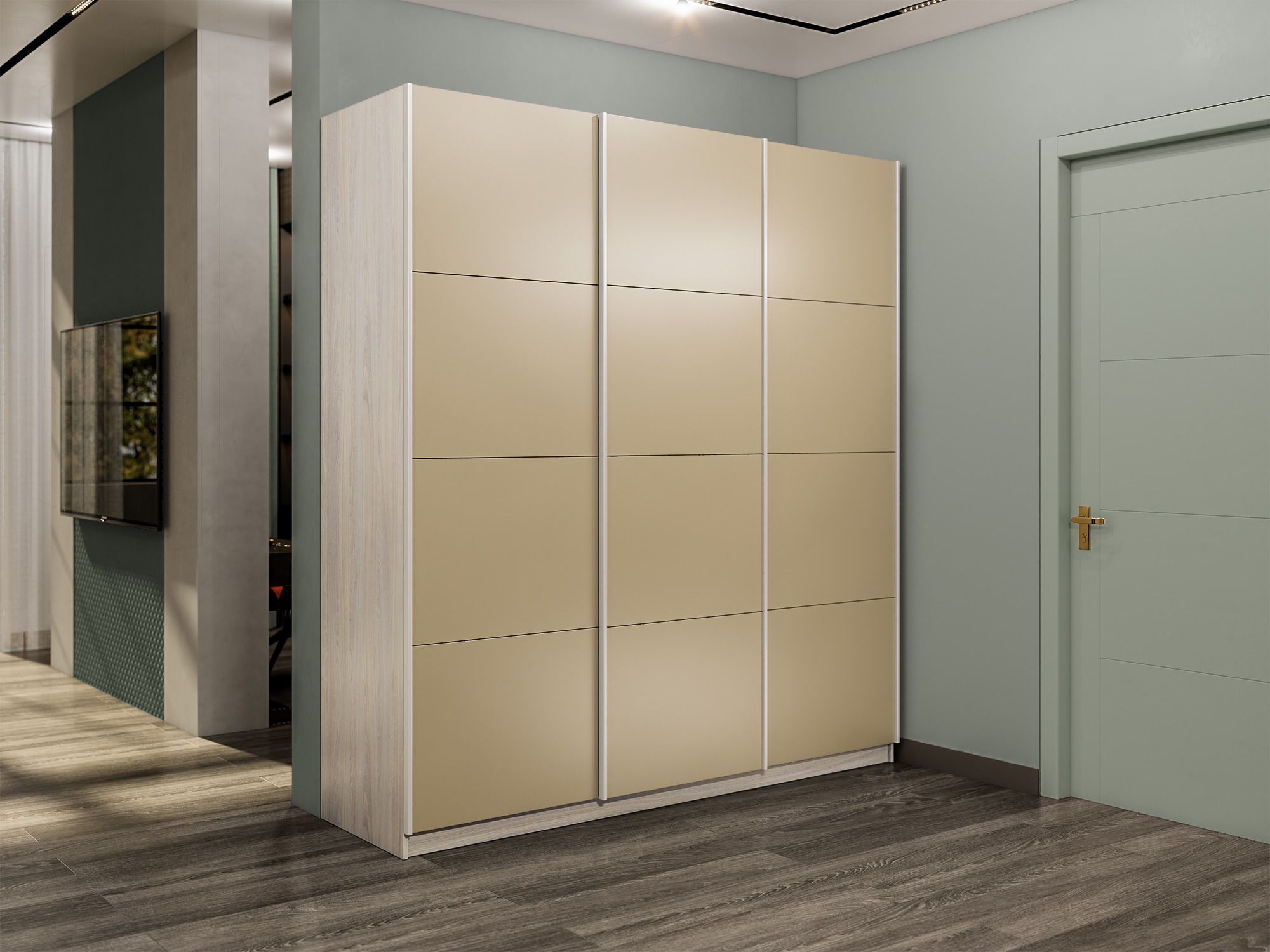 Шкаф-купе Прайм 3-х дверный Стекла фисташка/Доводчики 180х57х230 (Ясень Анкор светлый)