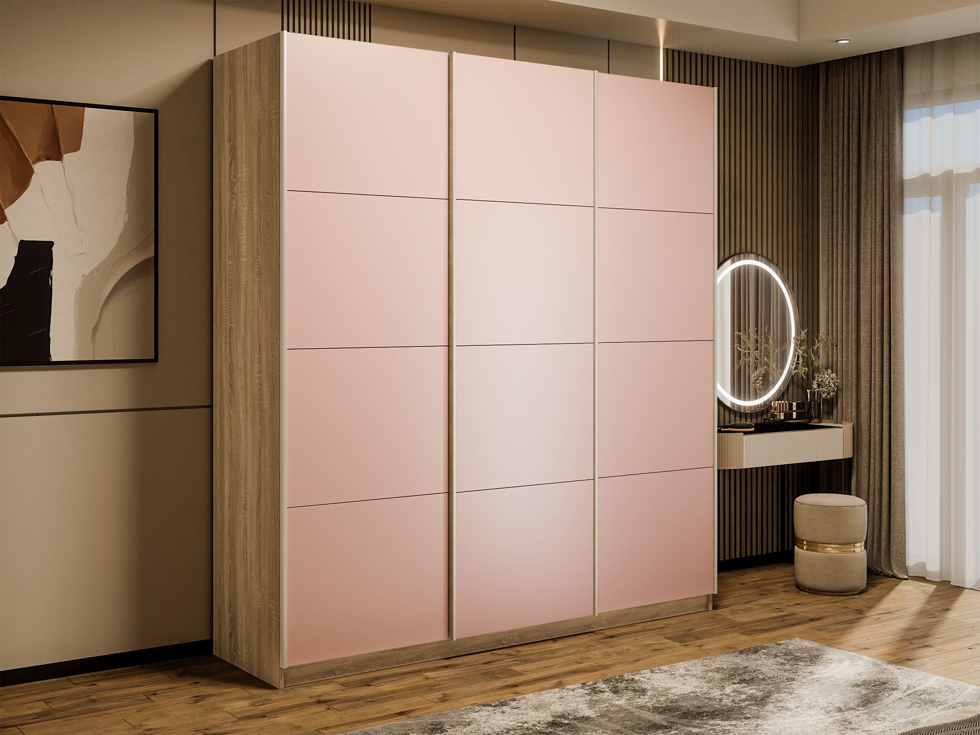 Шкаф-купе Прайм 3-х дверный Стекла пудра/Доводчики 180х57х230 (Дуб сонома)