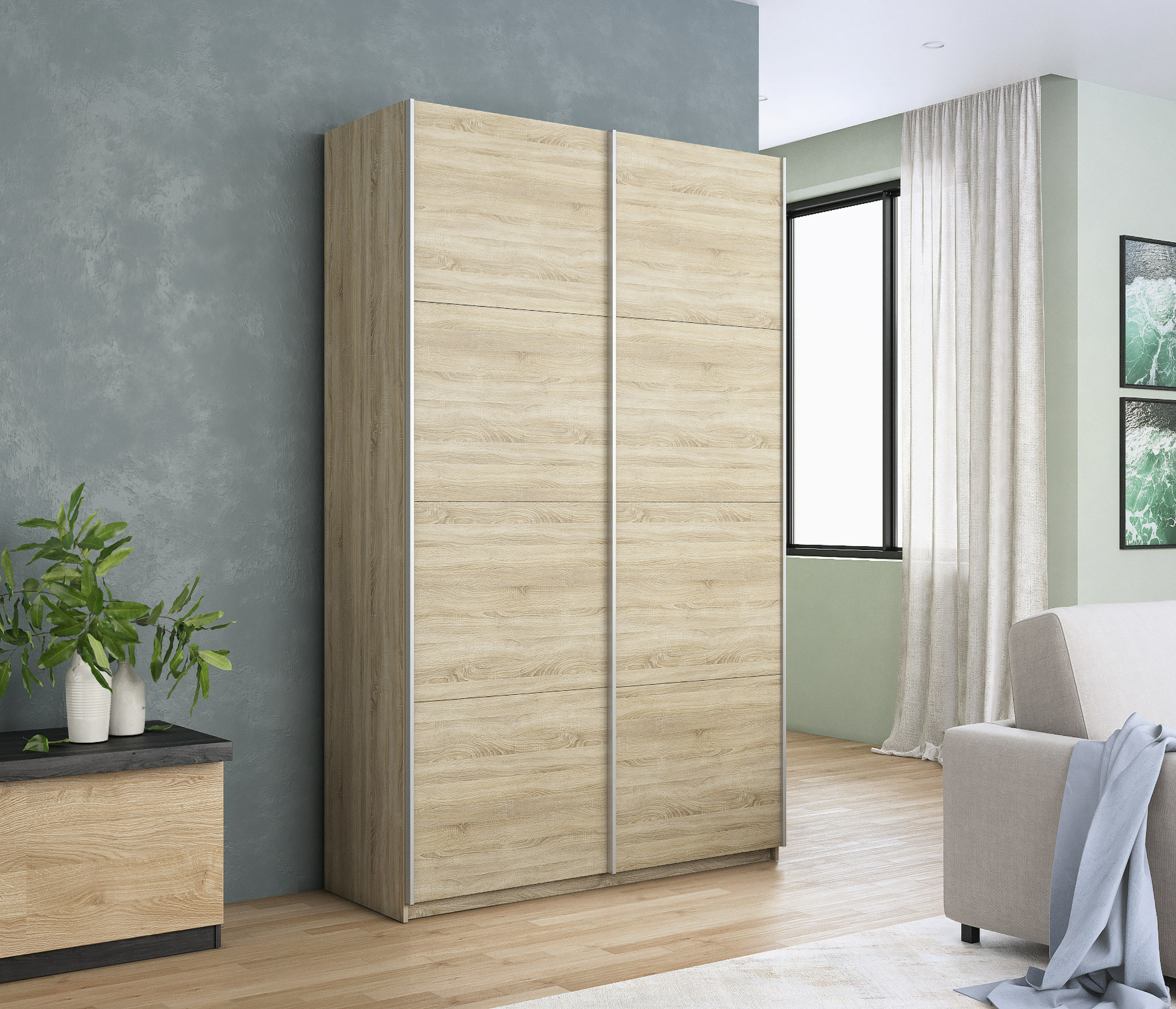 ВНИМАНИЕ! Минимальные размеры помещения для сборки и установки шкафа-купе серии "Прайм": +20 см по высоте, +5 см по ширине. Серия «Прайм» – это шкафы-купе для одежды с эстетичным и изысканным внешним видом, который достигается благодаря применению навесной системы крепления дверей-купе Hettich Top Line M со скрытым верхним ходовым профилем, данная система обеспечивает плавный ход фасадов. Каждая дверь поделена на 4 секции, которые можно устанавливать в произвольном порядке, создавая каждый раз новый дизайн фасада. Идеально подойдет не только к вашему спальному гарнитуру, прихожей и детской, но и будет гармонично сочетаться со всеми элементами мебели. Не займет много места, но позволит вместить большое количество вещей. Внутреннее наполнение шкафа позволяет вместить не только верхнюю одежду и обувь, но и аксессуары. А удобное разделение секций поможет грамотно разместить все вещи в шкафу. В шкафу-купе «Прайм» используется высококачественная фурнитура немецкого концерна Hettich, это обеспечит вам комфортное и долгое использование гардероба. В производстве используется безопасное ЛДСП международного класса Е1, что способствует безопасному использованию на протяжении всего срока эксплуатации. Поэтому вы можете использовать его в детской комнате, и ваш ребенок будет в безопасности. Доступна услуга сборки. Все подробности по тарифам и срокам уточнять у продавца. *Внутреннее наполнение стандартное, расположение полки/штанга менять местами не предусмотрено. Доводчики на закрывание входят в комплект. **Изображения товара могут отличаться по цвету и фактуре от фактического внешнего вида. Глубина шкафа по боковой стоевой с учетом дверей 570 мм, полезная глубина (глубина полок) 500 мм