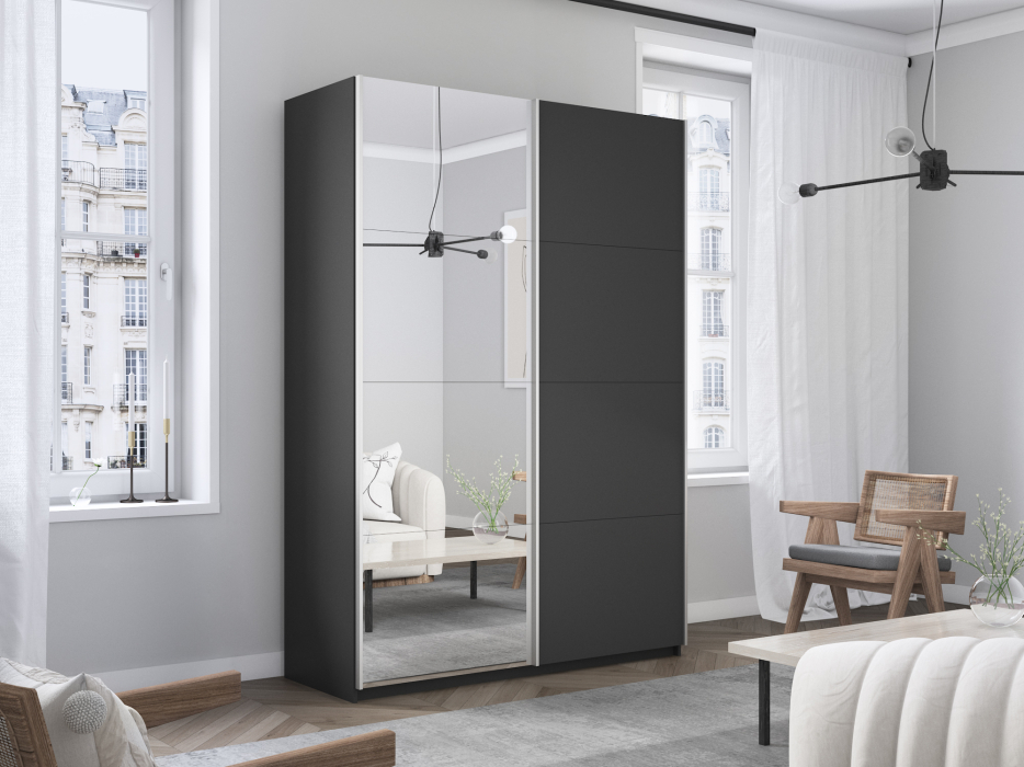 ВНИМАНИЕ! Минимальные размеры помещения для сборки и установки шкафа-купе серии "Прайм": +20 см по высоте, +5 см по ширине. Серия «Прайм» – это шкафы-купе для одежды с эстетичным и изысканным внешним видом, который достигается благодаря применению навесной системы крепления дверей-купе Hettich Top Line M со скрытым верхним ходовым профилем, данная система обеспечивает плавный ход фасадов. Каждая дверь поделена на 4 секции, которые можно устанавливать в произвольном порядке, создавая каждый раз новый дизайн фасада. Идеально подойдет не только к вашему спальному гарнитуру, прихожей и детской, но и будет гармонично сочетаться со всеми элементами мебели. Не займет много места, но позволит вместить большое количество вещей. Внутреннее наполнение шкафа позволяет вместить не только верхнюю одежду и обувь, но и аксессуары. А удобное разделение секций поможет грамотно разместить все вещи в шкафу. В шкафу-купе «Прайм» используется высококачественная фурнитура немецкого концерна Hettich, это обеспечит вам комфортное и долгое использование гардероба. В производстве используется безопасное ЛДСП международного класса Е1, что способствует безопасному использованию на протяжении всего срока эксплуатации. Поэтому вы можете использовать его в детской комнате, и ваш ребенок будет в безопасности. Доступна услуга сборки. Все подробности по тарифам и срокам уточнять у продавца. *Внутреннее наполнение стандартное, расположение полки/штанга менять местами не предусмотрено. Доводчики на закрывание входят в комплект. **Изображения товара могут отличаться по цвету и фактуре от фактического внешнего вида. Глубина шкафа по боковой стоевой с учетом дверей 570 мм, полезная глубина (глубина полок) 500 мм