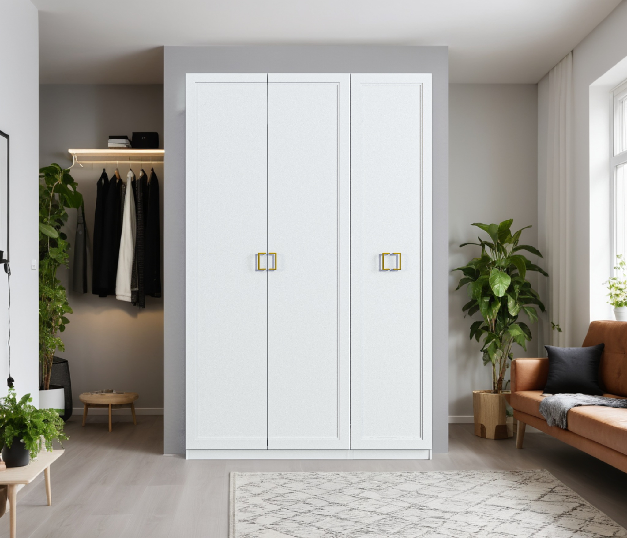 Трехдверный шкаф Ассоль — элегантное и функциональное решение для хранения. Корпус выполнен из прочного ЛДСП, фасады из качественного МДФ с изысканными золотыми ручками. Внутреннее наполнение включает полки, ящики и штангу для одежды, обеспечивая удобство и порядок в вашем пространстве. Шкаф идеально впишется в любой интерьер, сочетая стиль и практичность.