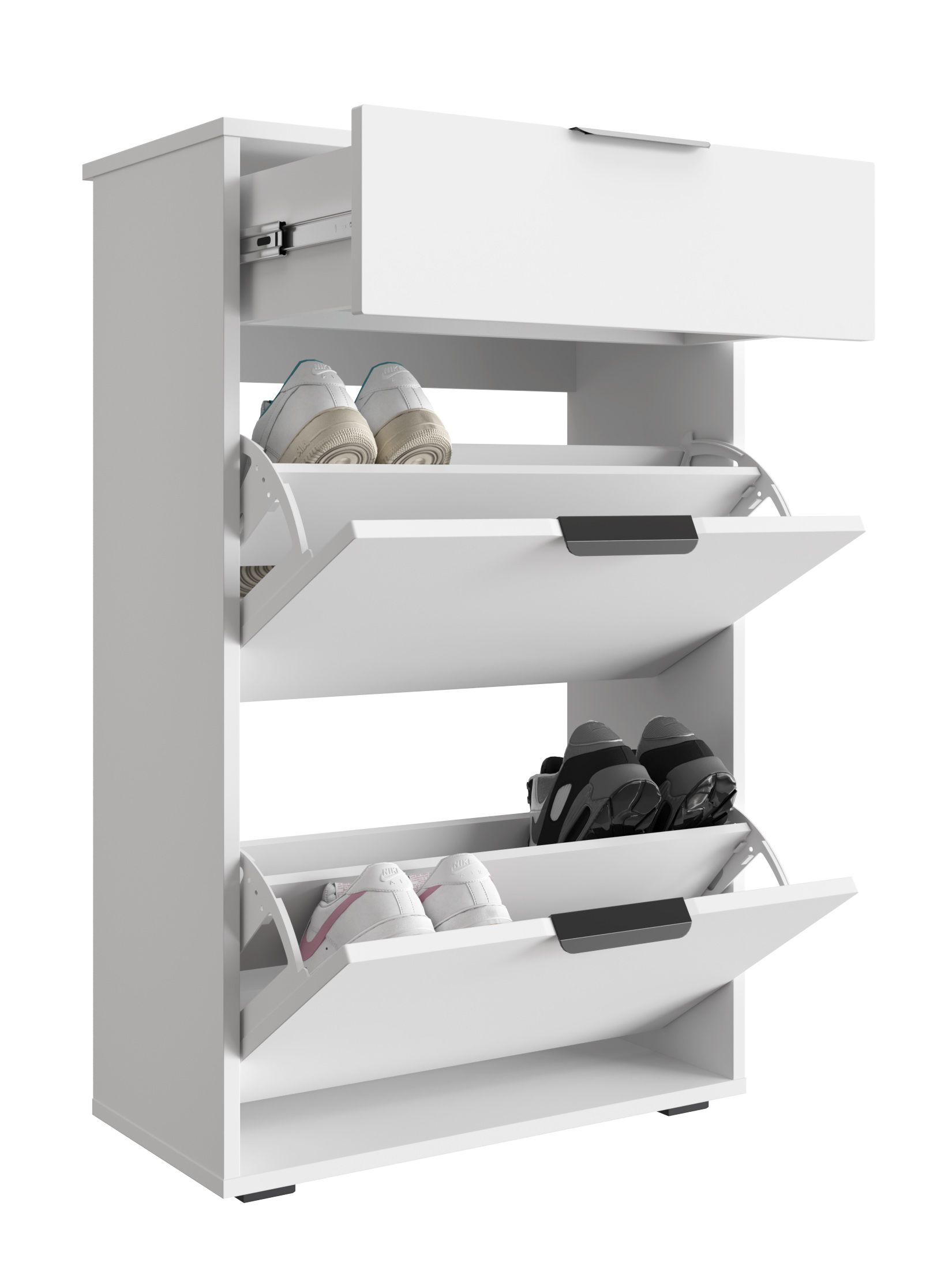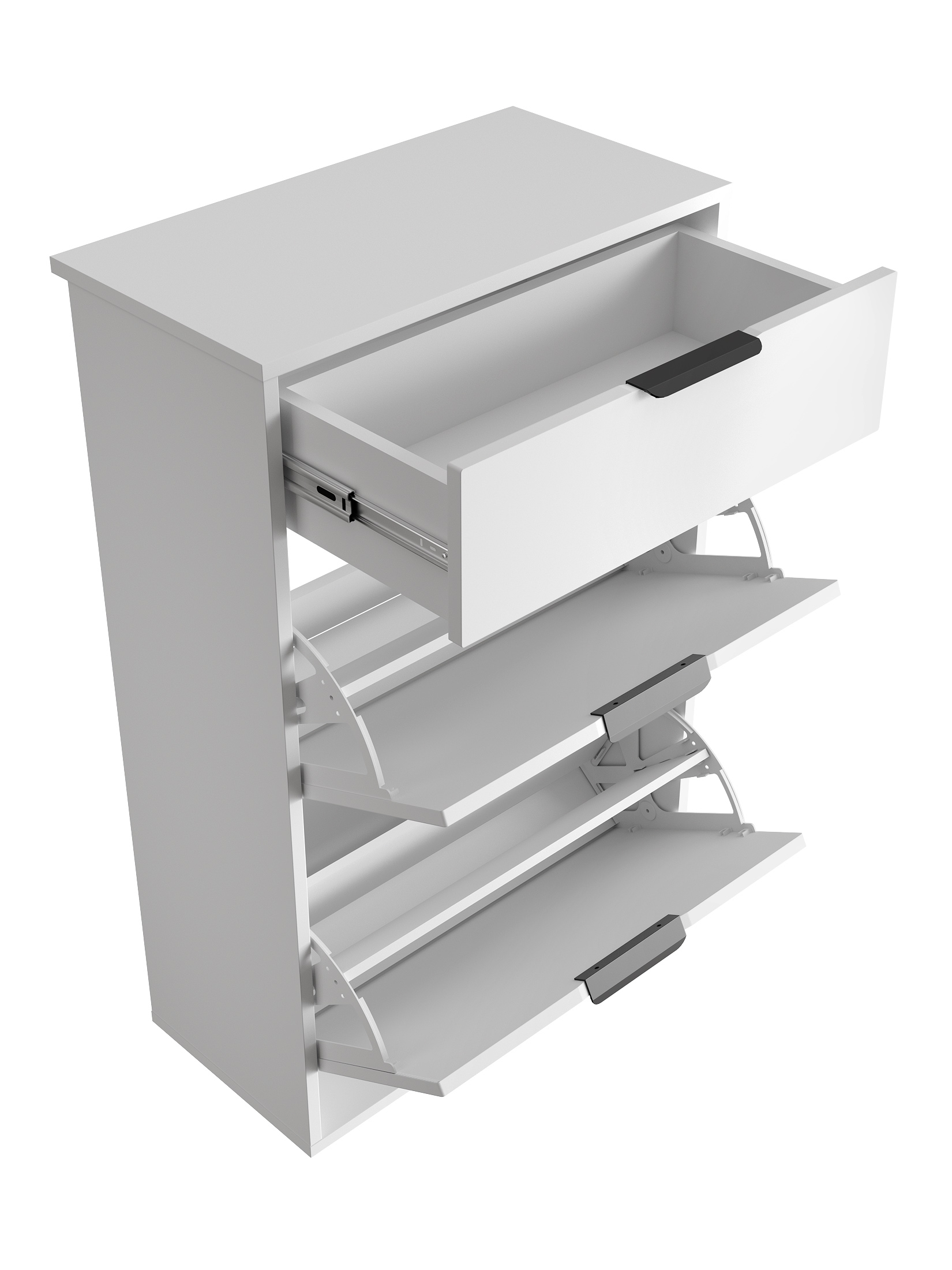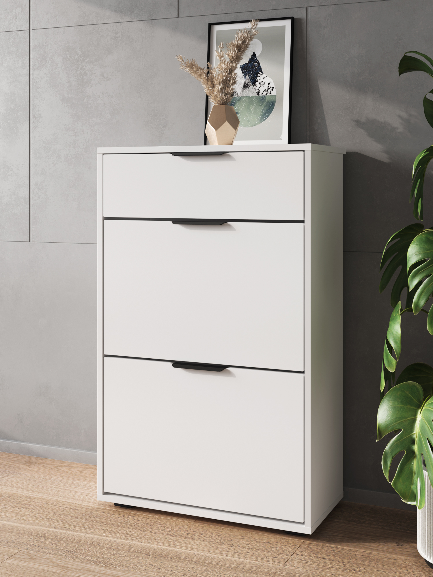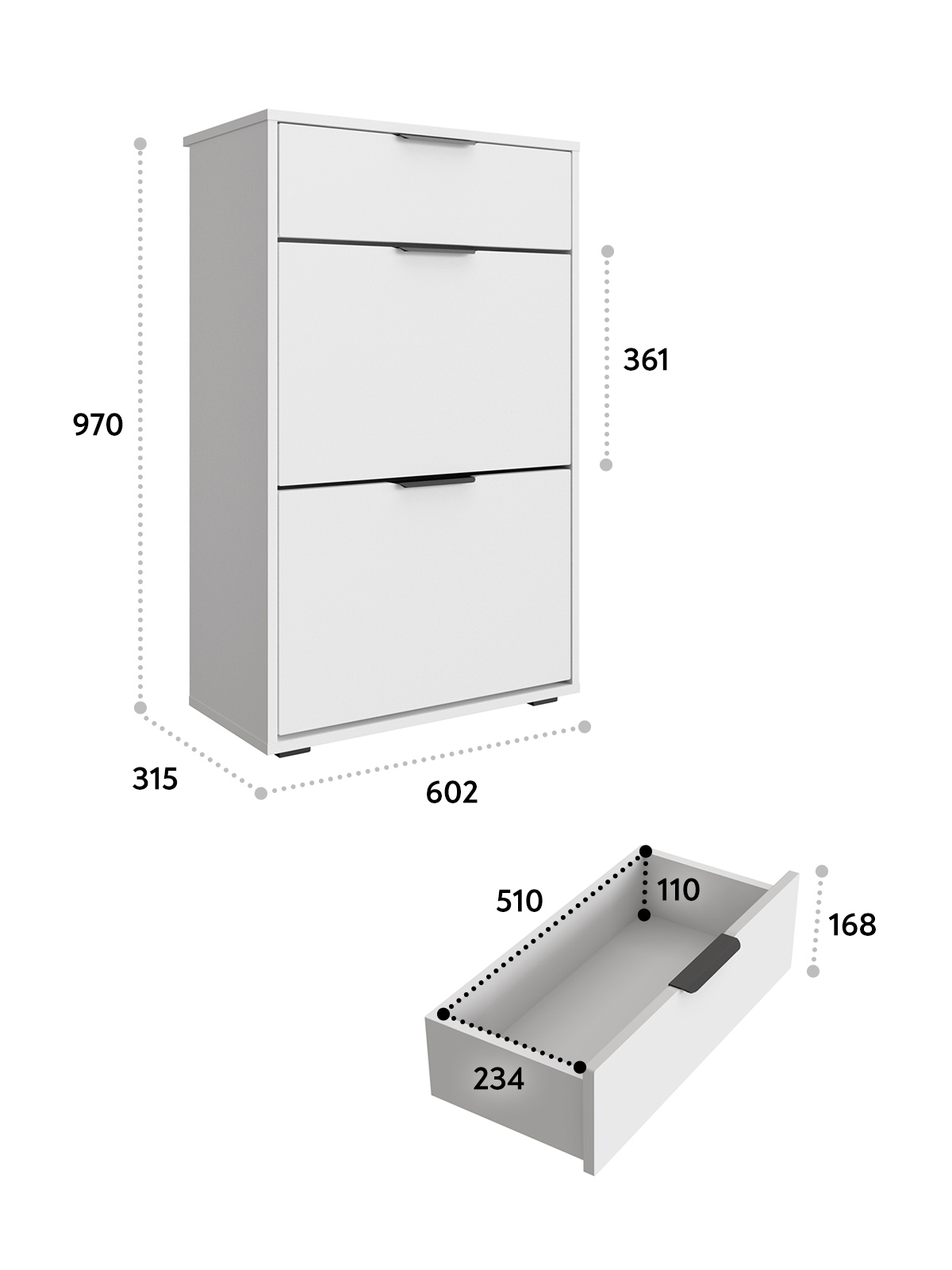 Тумба для обуви Оптима ОП-09 — это идеальный выбор для обустройства прихожей или гардеробной. Ее компактные размеры и продуманная конструкция помогут организовать пространство и сохранить порядок. Основные характеристики: Размеры: 602х970х315 мм (ширина/высота/глубина). Цвета: белый структурный/графит — сочетание современного дизайна и практичности. Материалы: корпус из ЛДСП 16 мм, фасады из МДФ 16 мм. Преимущества тумбы Оптима ОП-09: Функциональность: полки за распашными дверьми и выдвижной ящик для мелочей. Вмещается до 8 пар обуви. Удобство использования: свес крышки на 25 мм обеспечивает прилегание к стене с любым плинтусом. Качественная фурнитура: металлические ручки, телескопические направляющие полного выдвижения без доводчиков, регулируемые опоры высотой 20мм. Доставка и сборка: мебель поставляется в разобранном виде, в надежной упаковке, с подробной инструкцией по сборке. Сборка осуществляется самостоятельно или с привлечением специалистов. Рекомендуется монтаж к стене для дополнительной устойчивости.