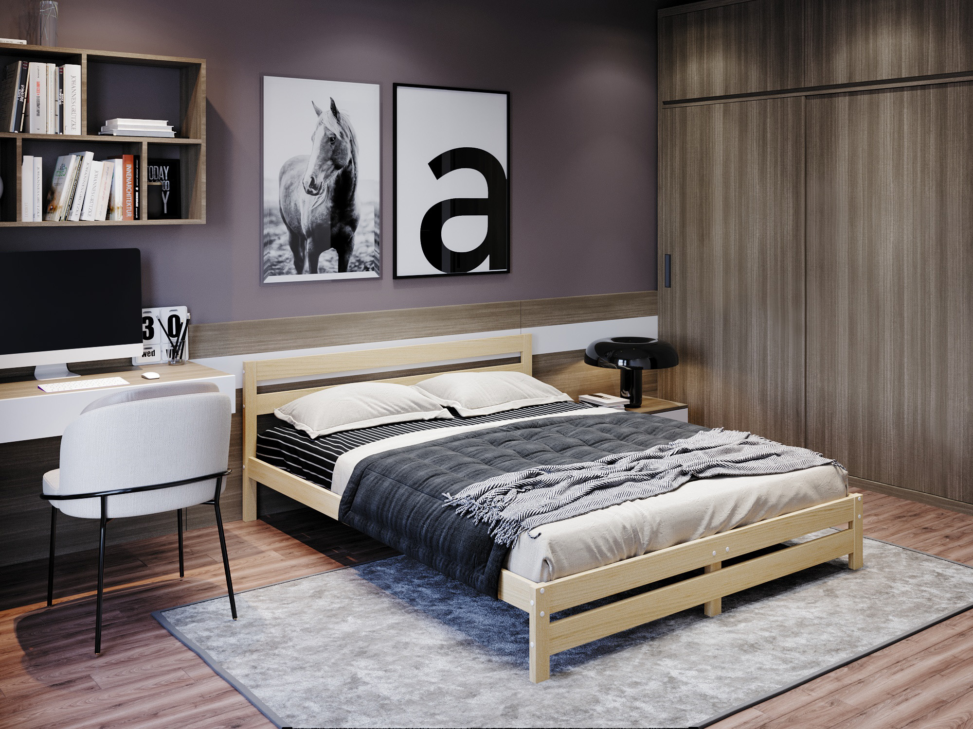Благодаря 5 опорным стойкам по середине двуспальной кровати устойчивость повышена, чтобы выдерживать максимальный вес 200 кг.