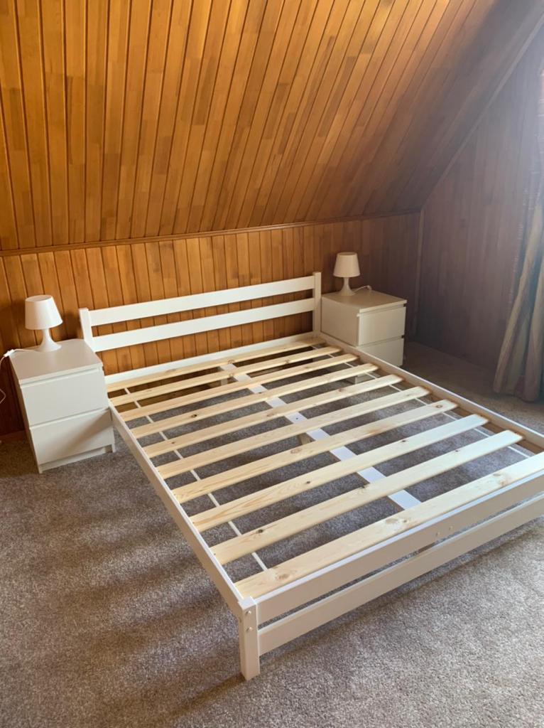 Благодаря 5 опорным стойкам по середине двуспальной кровати устойчивость повышена, чтобы выдерживать максимальный вес 200 кг.