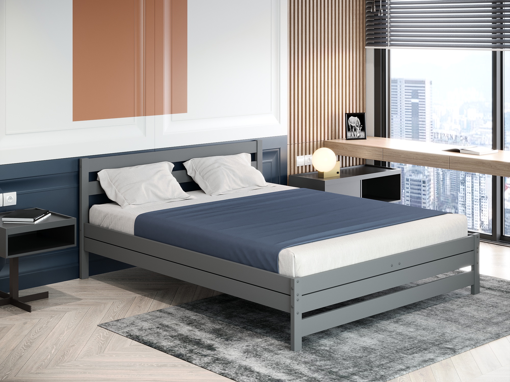 Кровать двуспальная "MAMAMIA3" 140х200 (Серый)
