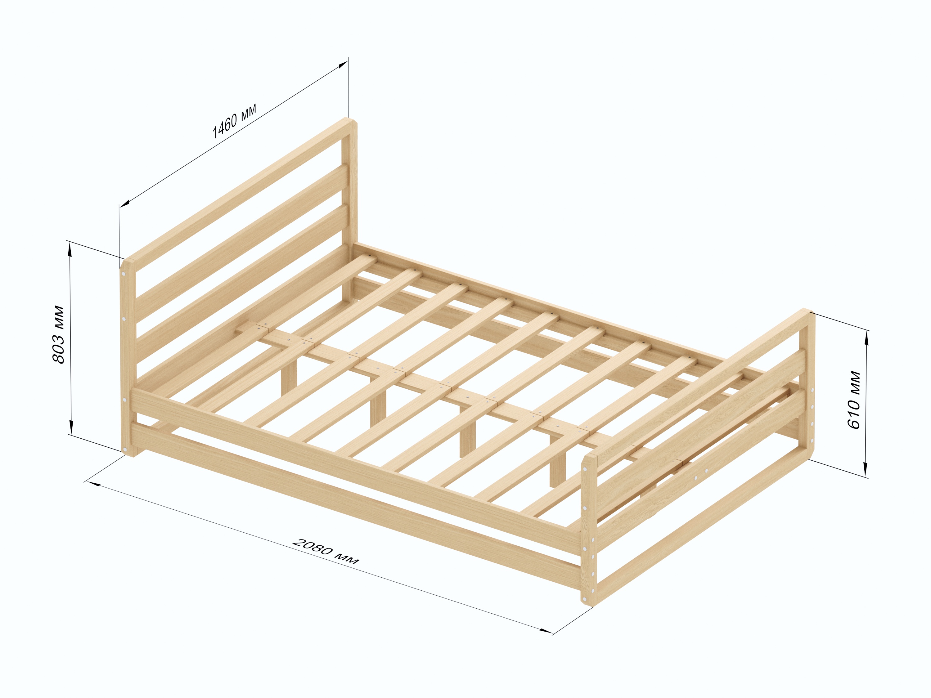 Двуспальная кровать "LIZA" ОЧЕНЬ КРЕПКАЯ так как усилена двойными рейками 20*90 мм по всем сторонам кровати. Благодаря 5 опорным стойкам по середине двуспальной кровати устойчивость повышена, чтобы выдерживать максимальный вес 200 кг.