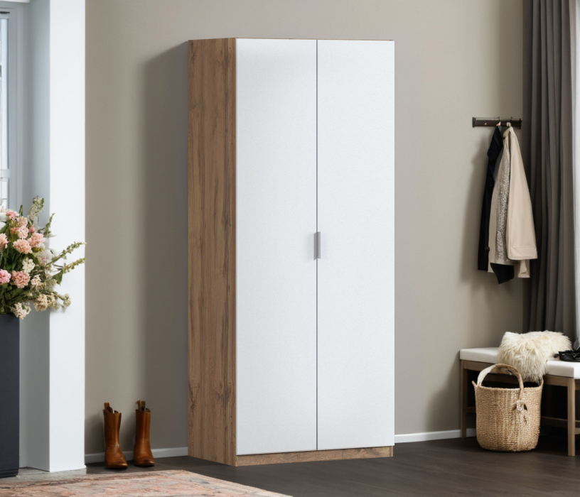 Шкаф двухдверный Макс 1000 мм, вариант №2 (ЛДСП, корпус дуб вотан) (Дуб вотан/Белый)