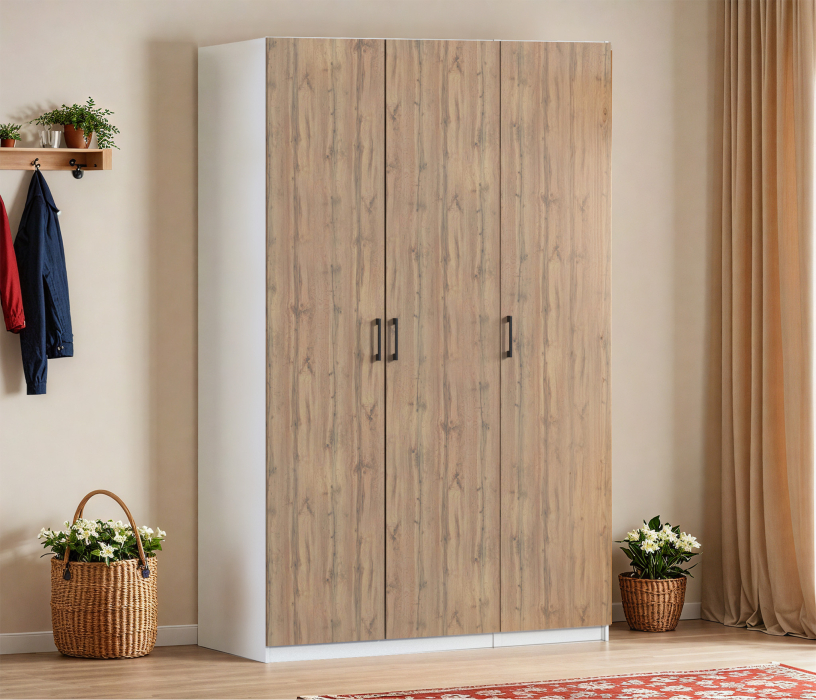 Шкаф трехдверный Макс 1500 мм, вариант №1 (ЛДСП) (Дуб вотан/Белый)