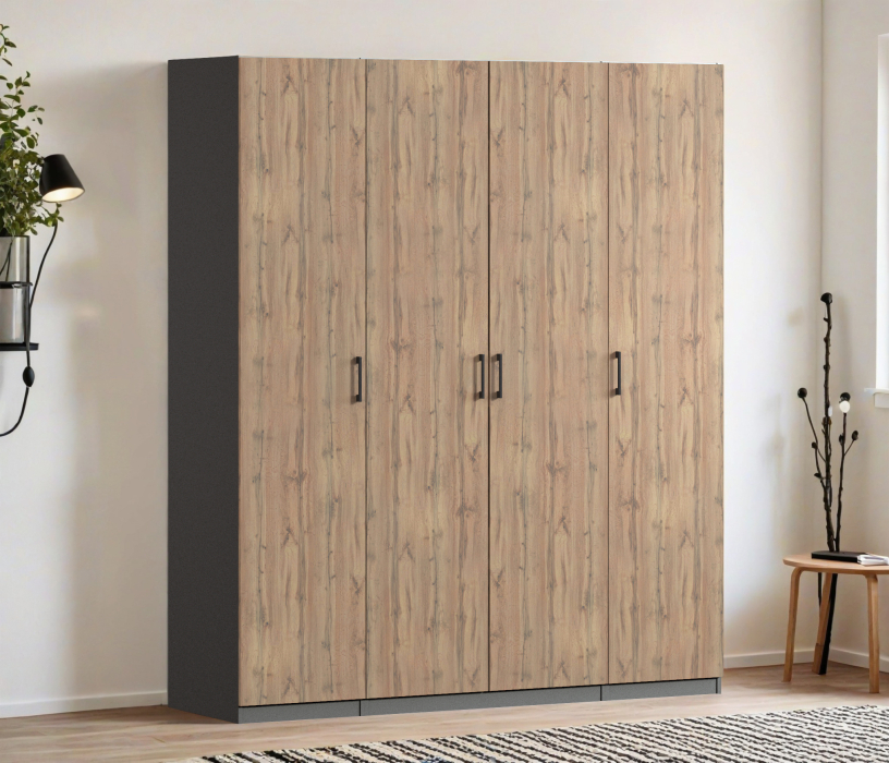 Шкаф четырехдверный Макс 2000 мм, вариант №1 (ЛДСП) (Дуб вотан/Диамант серый)