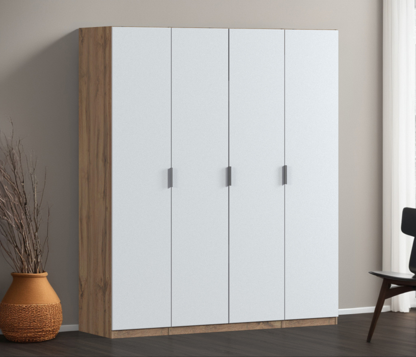 Отзывы о Столплит Шкаф четырехдверный Макс 2000 мм, вариант №3 (ЛДСП, корпус дуб вотан) Белый Альпийский