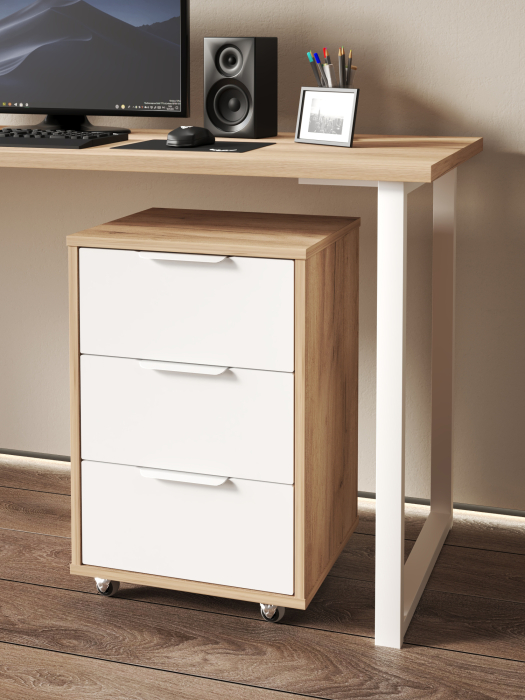 Размеры модуля (ш/в/г) в мм: 404х623х350 Материал корпуса/фасада: ЛДСП 16мм, МДФ 16мм Тумба мобильная К-55 подойдет для бизнеса, для рабочего места. Тумба оснащена 3-мя выдвижными ящиками для различных мелочей. Фурнитура: телескопические направляющие полного выдвижения без доводчиков Металлические ручки Фасады ящиков МДФ Прорезиненные колесики с металлической крепежной платформой, с возможностью поворота на 360 градусов Доставка и сборка: мебель поставляется в разобранном виде, в надежной упаковке, с подробной инструкцией по сборке. Сборка осуществляется самостоятельно или с привлечением специалистов.