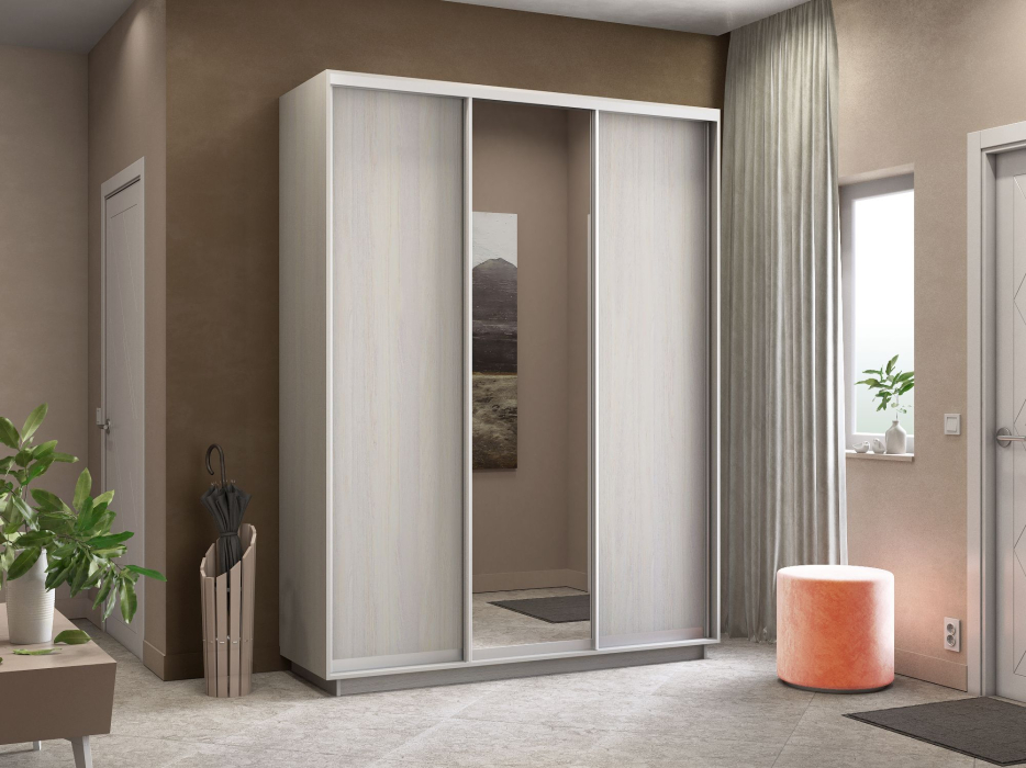 Шкаф-купе Экспресс Медиум (1 зеркало) трио 2200 x 1800 x 600 (Ясень Анкор светлый)
