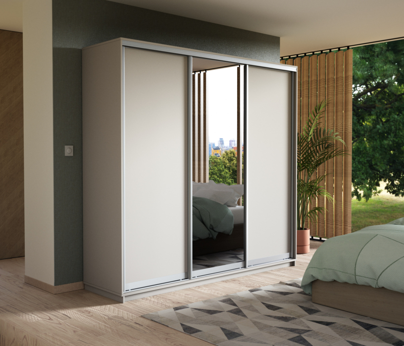 Шкаф-купе Экспресс Медиум (1 зеркало) трио 2200 x 2100 x 600 (Белый)