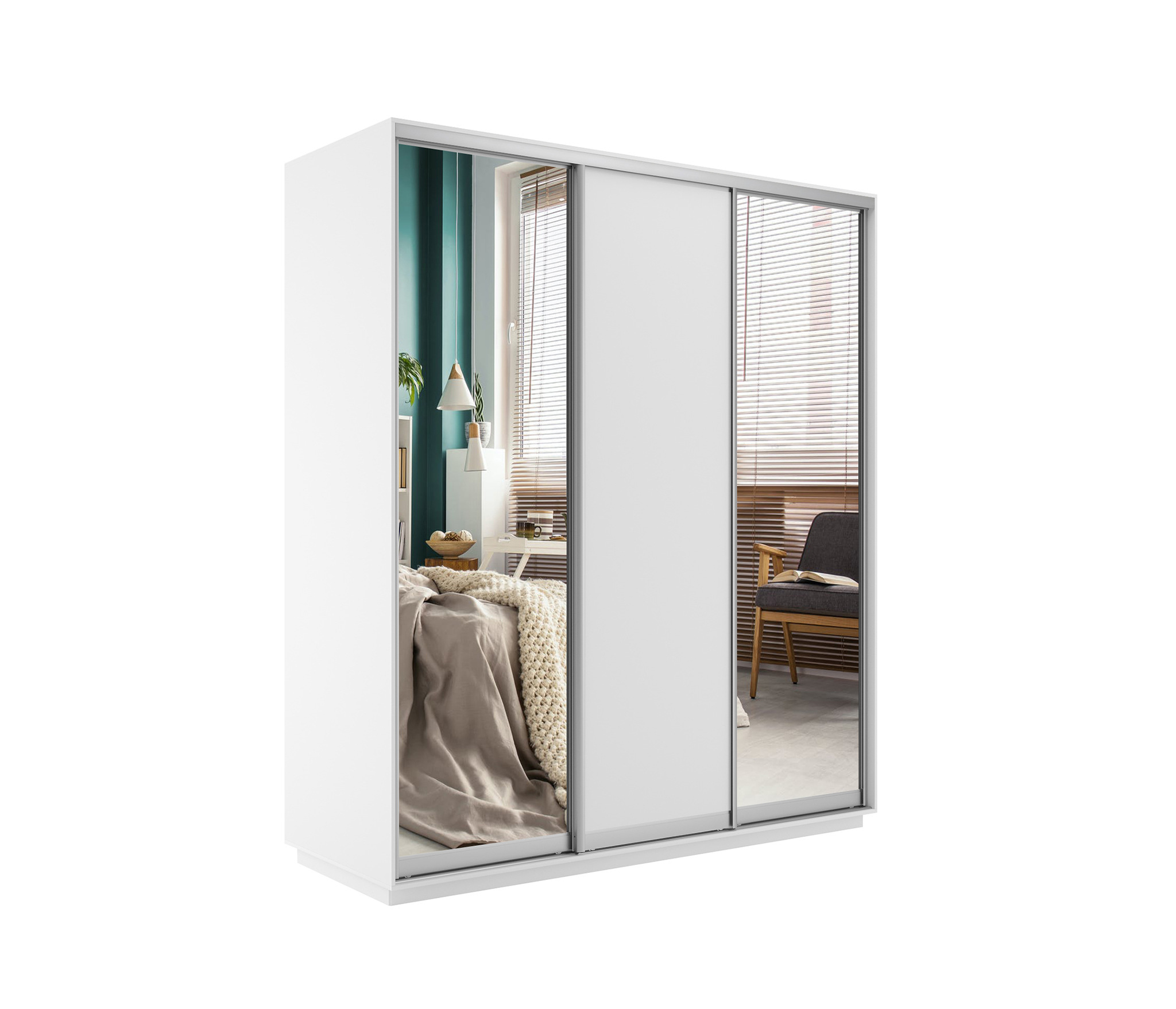 Шкаф-купе Экспресс Медиум (2 зеркала) трио 2200 x 2100 x 600 (Белый)