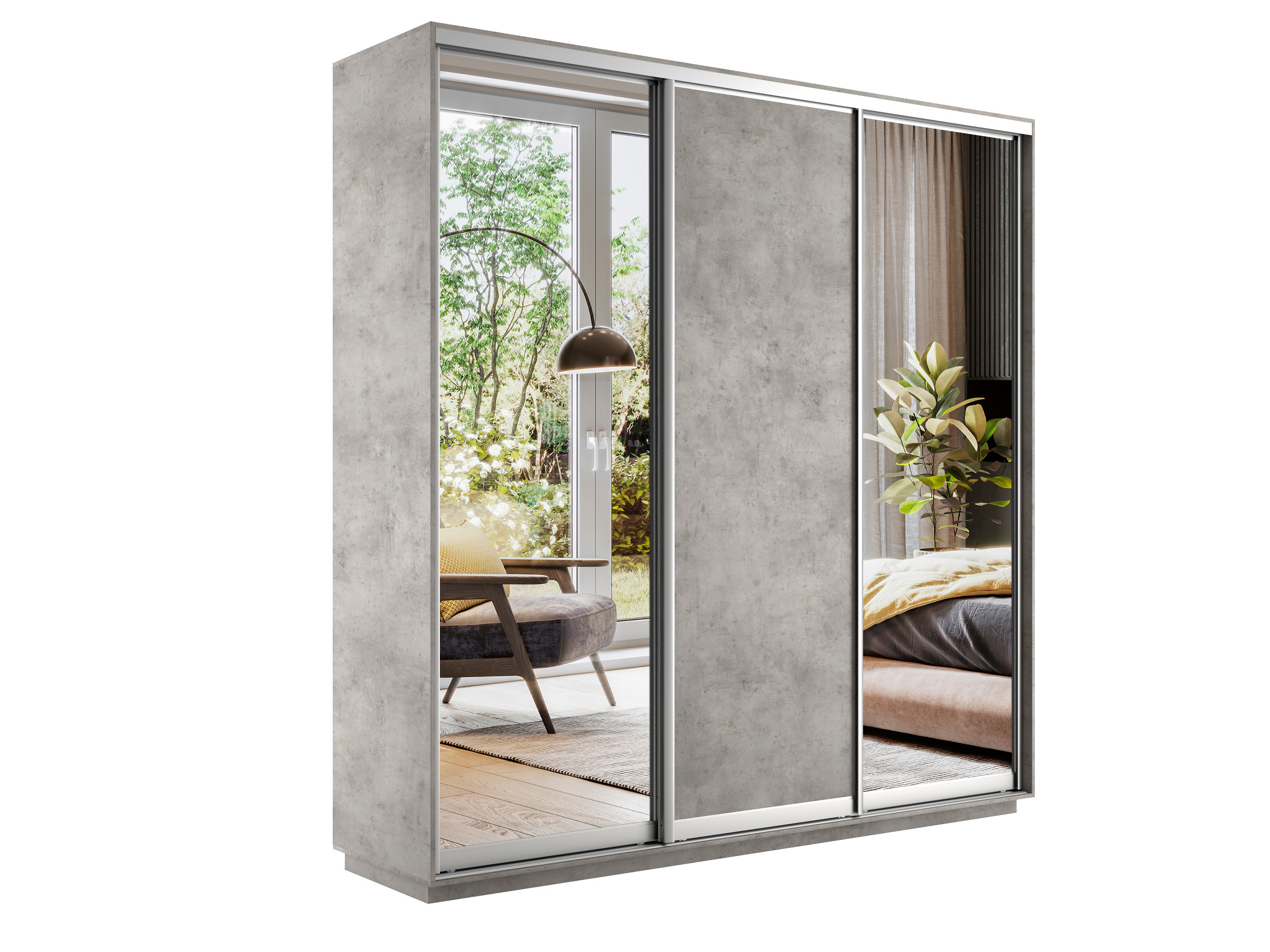 Шкаф-купе Экспресс Медиум (2 зеркала) трио 2400 x 2400 x 600 (Бетон серый)