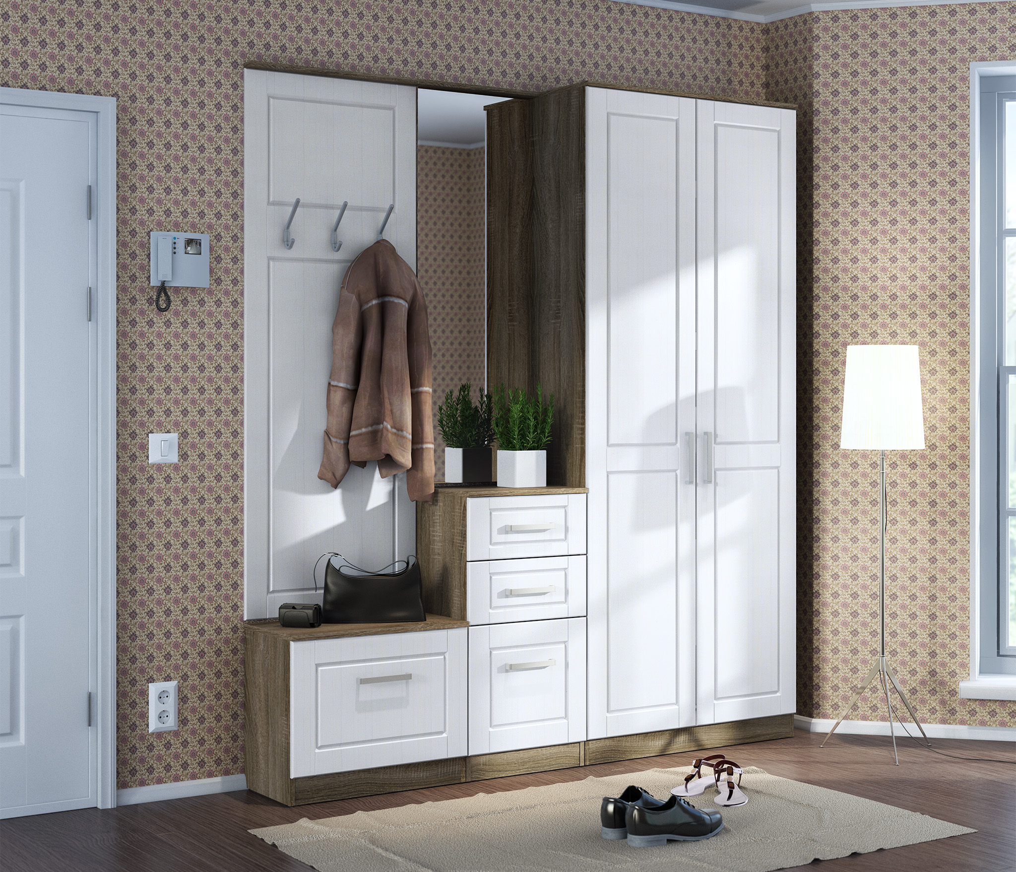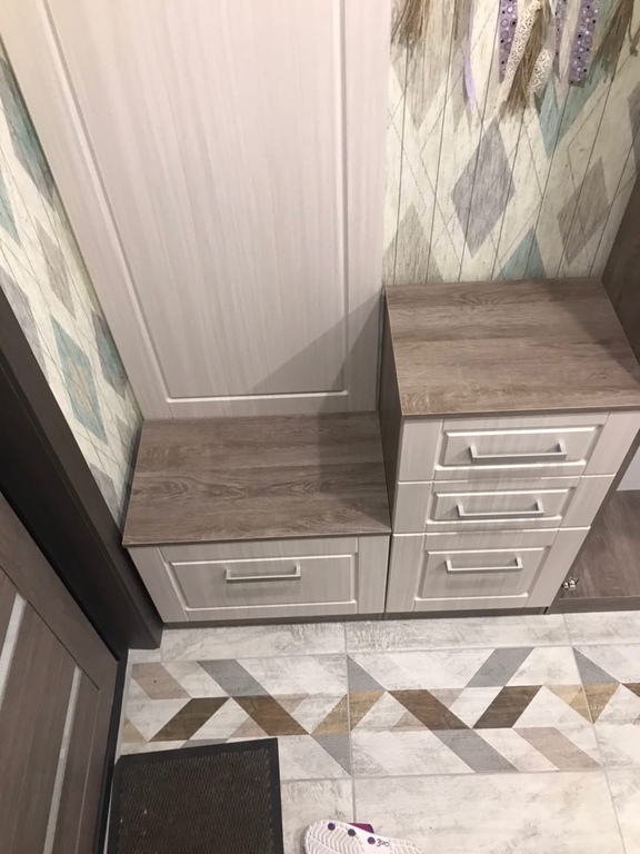 Купили комплект для прихожей, тумбу с вешалкой и пенал с открытыми полками, ящиками и дверцей. Качество фасадов отличное, ламинированного корпуса похуже, есть поперечные полосы перпендикулярно рисунку дерева , хорошо у нас не на внешних деталях, это единственный минус, по размерам и цвету идеально подошли. Спасибо.