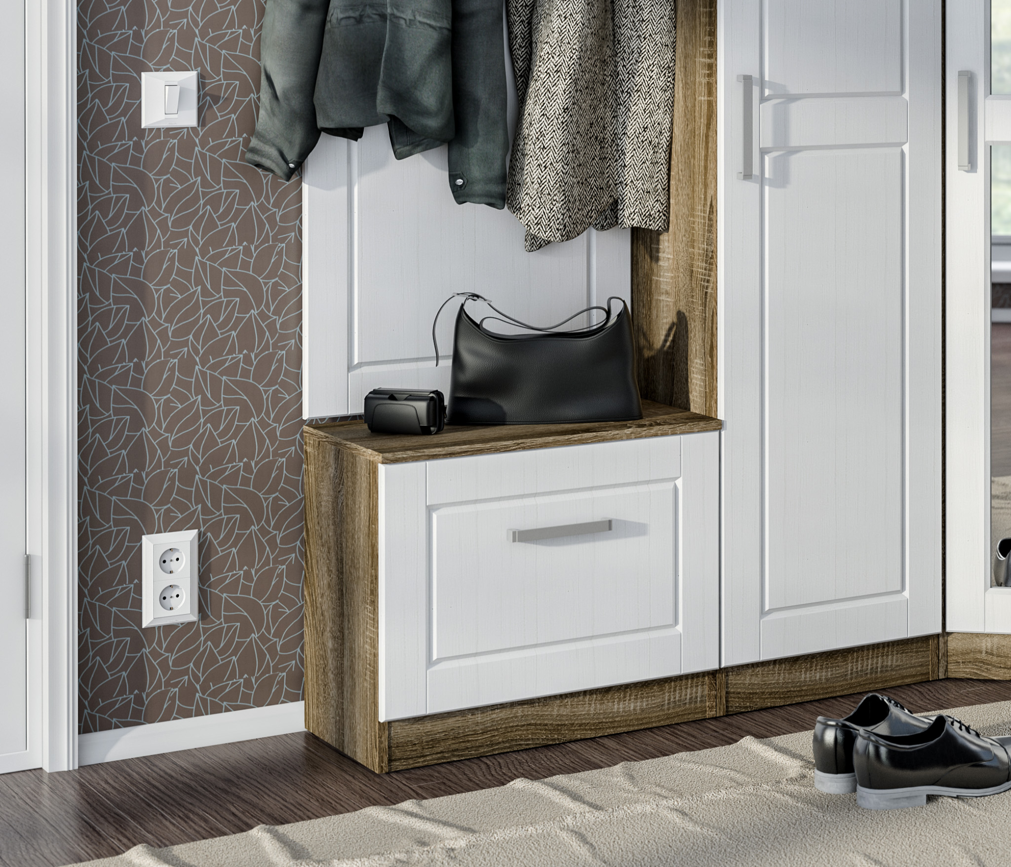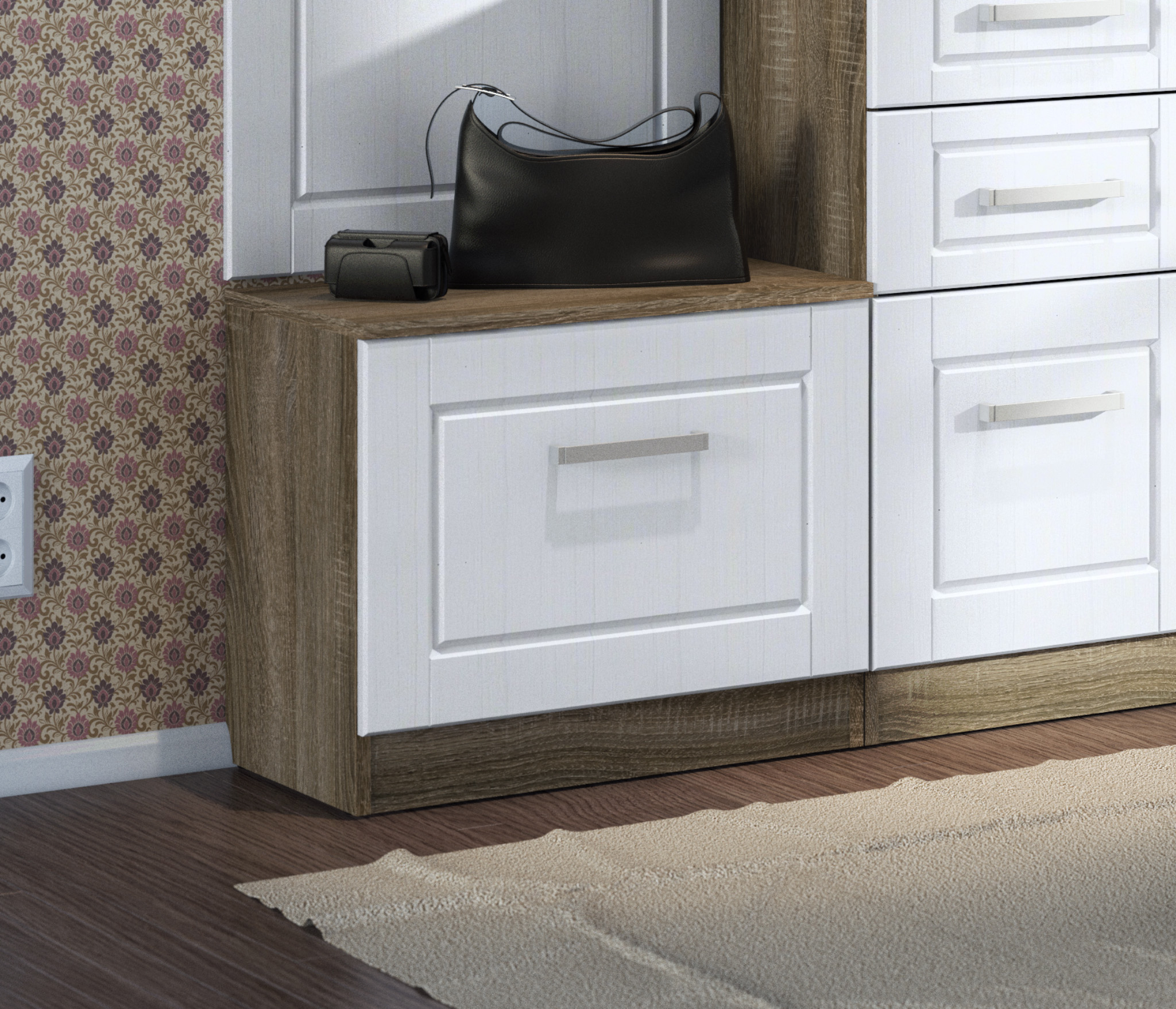 Тумба Илона СБ-2635 предназначена для хранения обуви, оптимальна для прихожей небольшой площади. Может быть элементом гарнитура Илона.Несмотря на компактные габаритные размеры – ширина 59 см, высота 50 см, глубина 33 см и небольшой вес 12,67 кг, тумба довольно вместительная. Имеет одно отделение с отдельной дверцей.