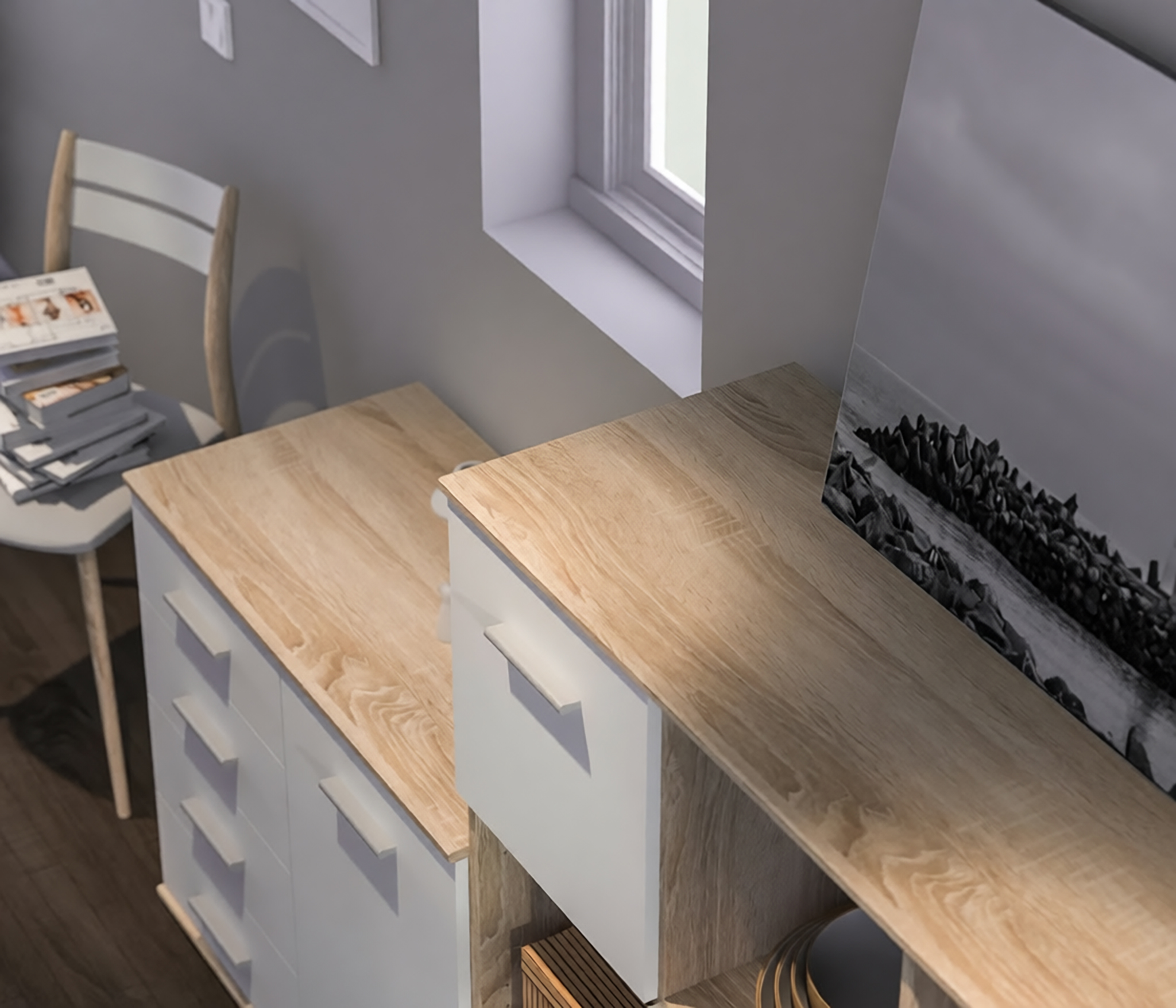 Комод выполнен в лаконичном дизайне, светлое покрытие фасадов позволяет смотреться этому предмету мебели стильно и не громоздко.