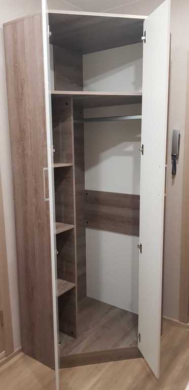 Угловой двухдверный шкаф Илона СБ-2799 предназначен для хранения одежды. Шкаф органично впишется в интерьер спальни, прихожей, кабинета или детской.