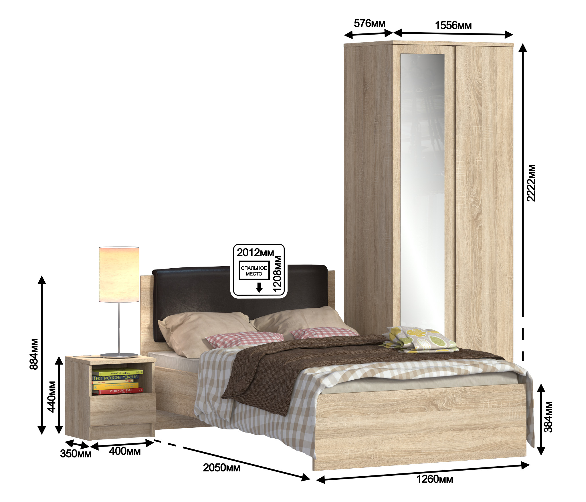 Веста набор с кроватью 1200 (Дуб Сонома)