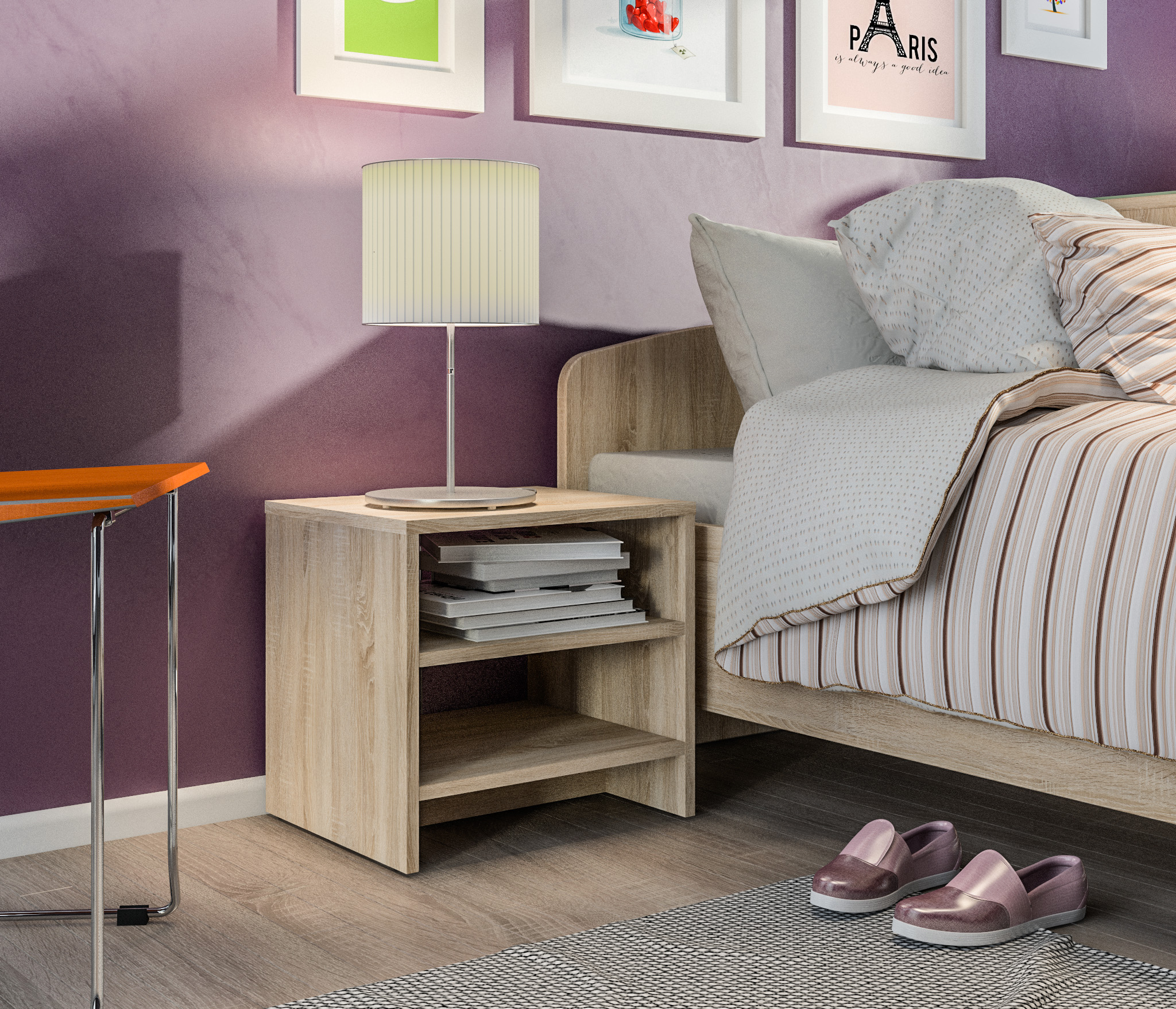 Заказали сыну в спальню, очень удобная кровать,много места не занимает,в тумбочку и комод сынок складывает книги и игрушки,доставили быстро,сборка особых хлопот не принесла, приобретением довольны
