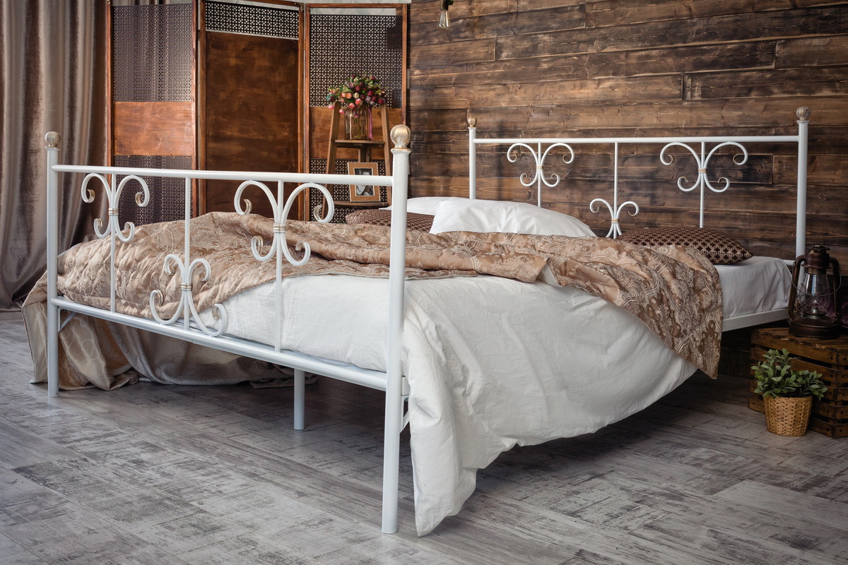 Продуманные стилистические решения кованой кровати Симона позволяют ей быть уместной как в классических, так и в современных интерьерах.
