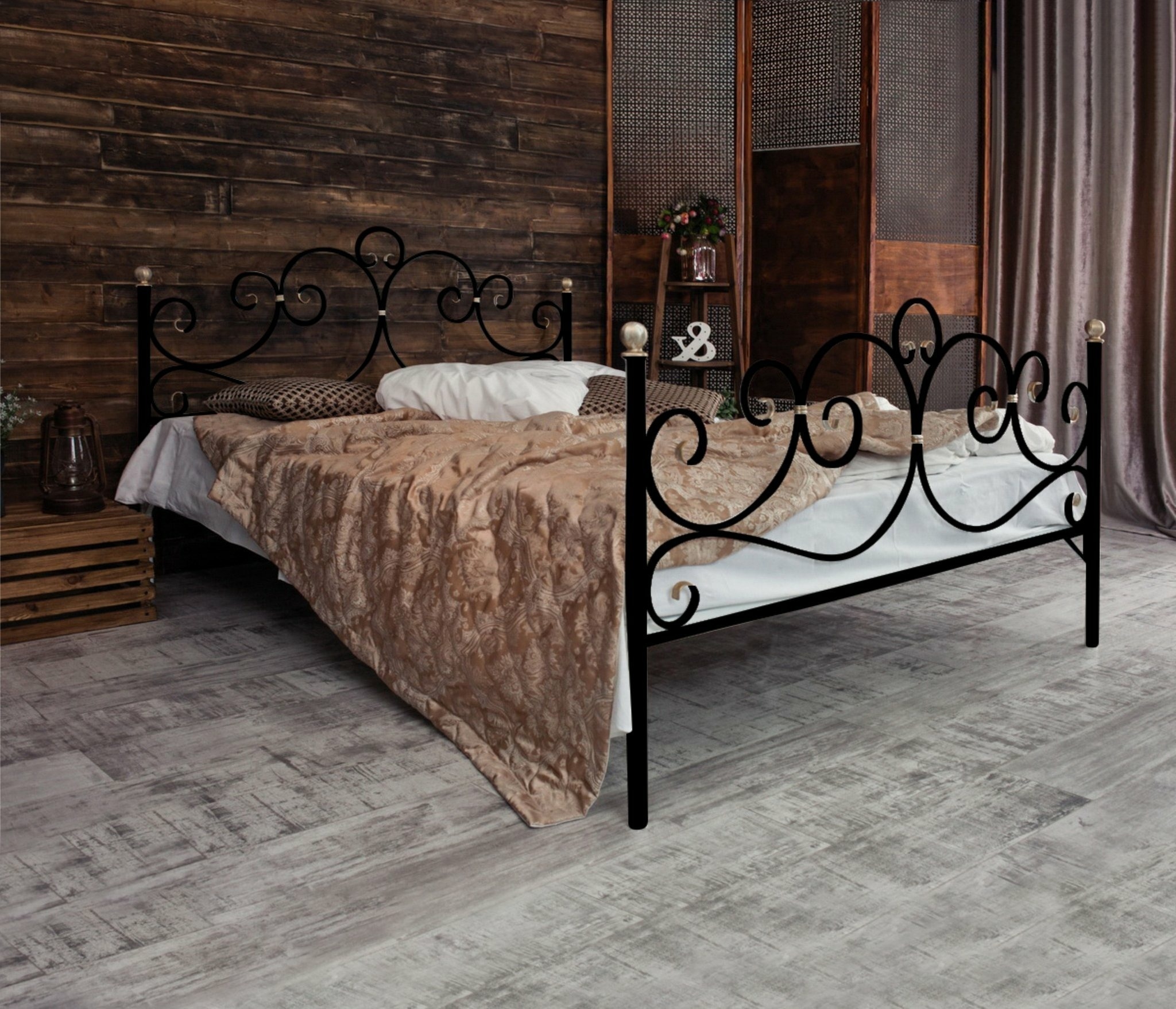 Кованая кровать Флоренция 1.6 с двумя спинками (Черный)