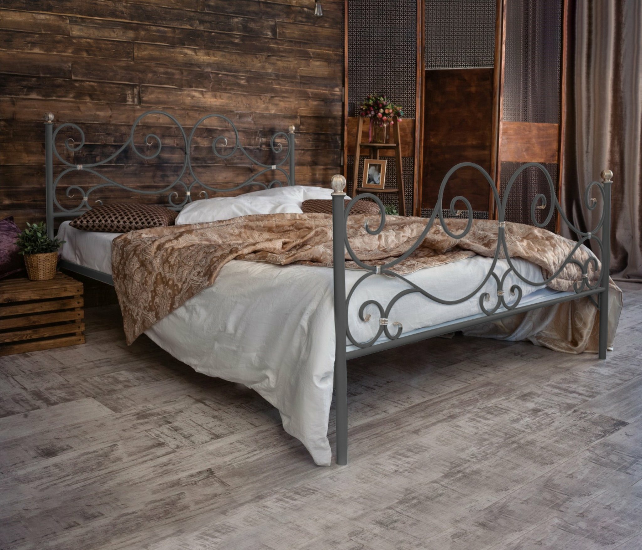 Кованая кровать Верона 1.8 с двумя спинками (Серый)