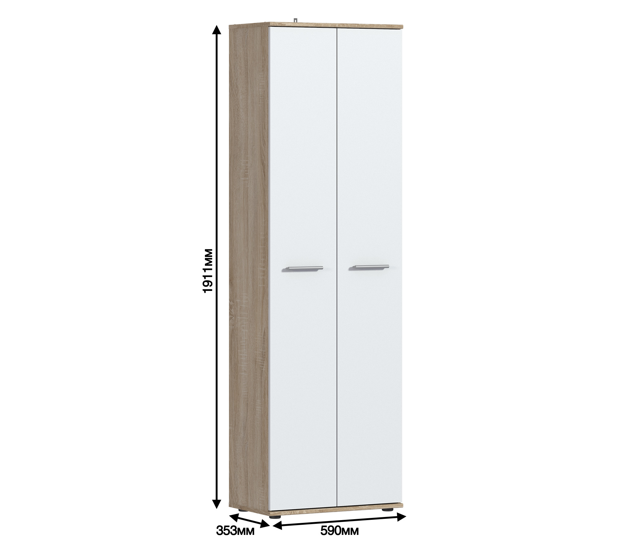 Двухдверный шкаф Мамбо СБ-2878 – компактное решение вопроса, связанного с хранением вещей. Благодаря минималистичному дизайну, шкаф можно разместить на небольшой площади в прихожей, детской комнате или офисе. Он может быть отдельным предметом мебели, а также частью гарнитура.