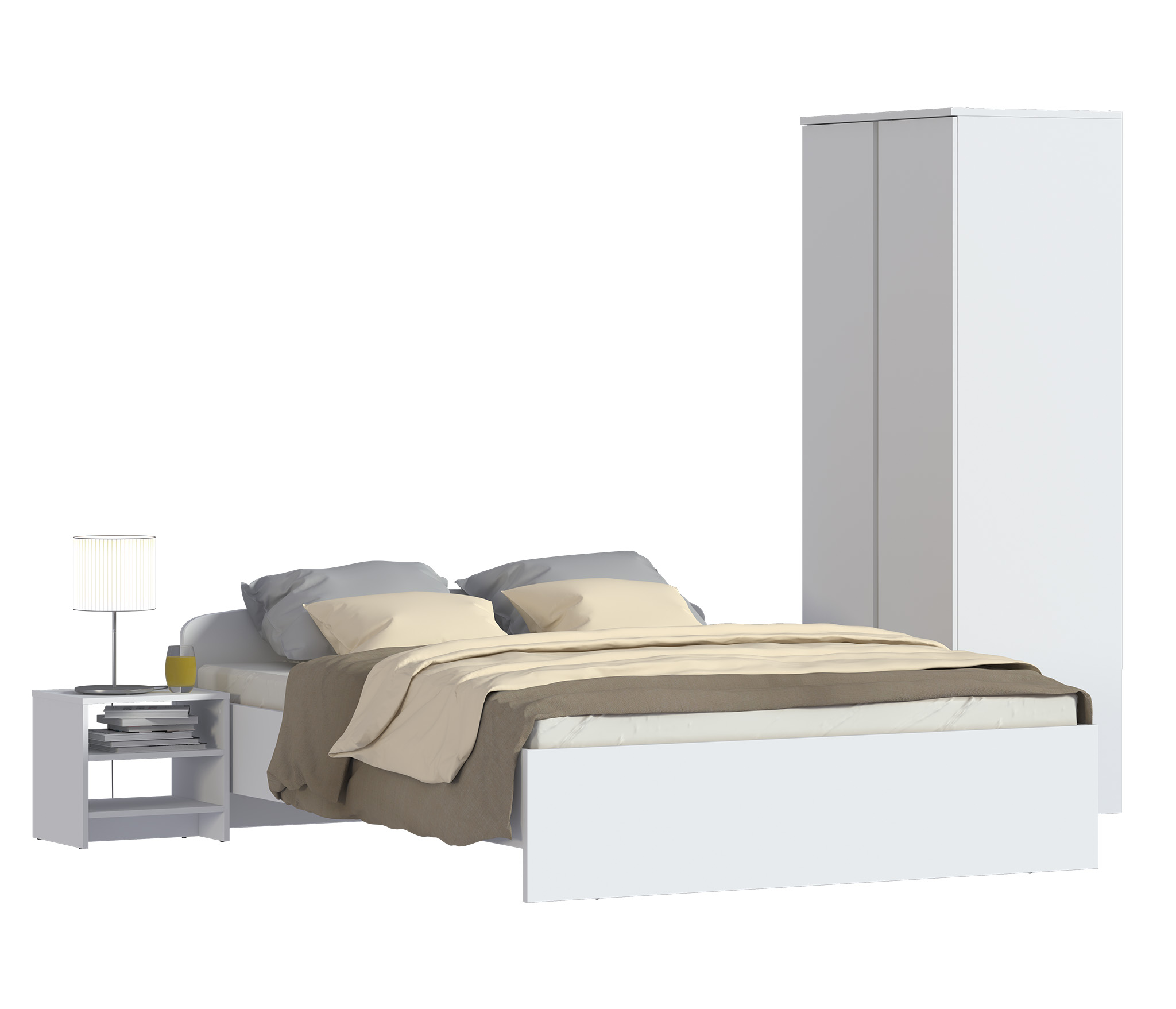 Кито набор (кровать+шкаф+тумба) Белый Код 00000246887