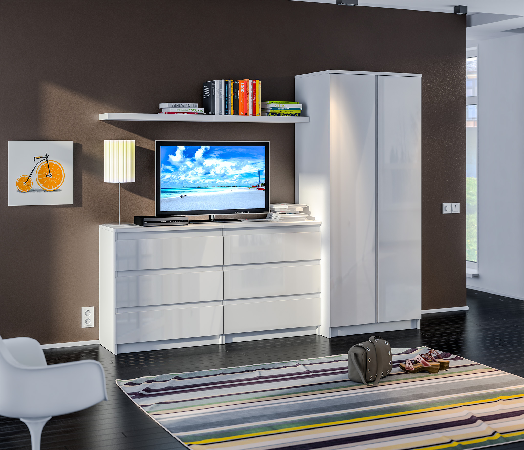 Комод Медея СБ-2347/1 (Белый/Белый глянец)