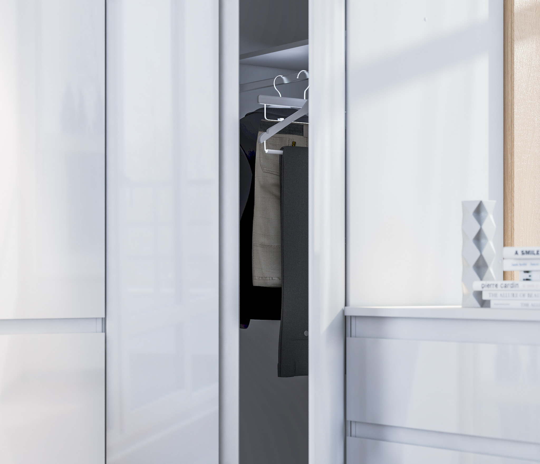 ручек, но хорошо продуманной системой открывания дверей. Шкаф состоит из 2-х