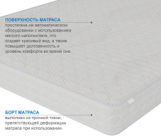 Матрас очень понравился, подбирали не дорогой.Оператор девушка посоветовала взять этот матрас.Мы не пожалели .Спать очень удобно,он идет двух сторонний.Покупкой довольны,нареканий нет!Спасибо!