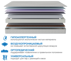 Данная модель сочетает в себе все компоненты, которые позволяют быть матрасу поистине комфортным и универсальным. Блок независимых пружин обеспечивает правильную поддержку позвоночнику и гарантирует расслабление мышц во время сна. Натуральный латекс, который используется в качестве комфортного слоя одной из сторон- считается премиальным наполнительным, который обладает уникальным сочетанием жесткости, упругости и долговечности. Вторая сторона матраса не много жестче, ведь там вместо латекса- латексированный кокосовый лист, который распределяет нагрузку по блоку пружин и придает матрасу необходимую жесткость. Чехол выполнен из плотного жаккарда, в составе, которого не менее 60% хлопка, а стегается он на 15 мм пене, что придает матрасу мягкость, при этом узор стежки подобран таким образом, что его поверхность обладает тем же эффектом микромассажа, что и ячеистые пены. Обращаем ваше внимание на то, что любой матрас отвечает за правильность положения во время сна нижнего и среднего отделов позвоночника, а за правильность положения шейного отдела отвечает правильно подобранная ортопедическая подушка. Рекомендуем использование с защитным чехлом AquaStop. |