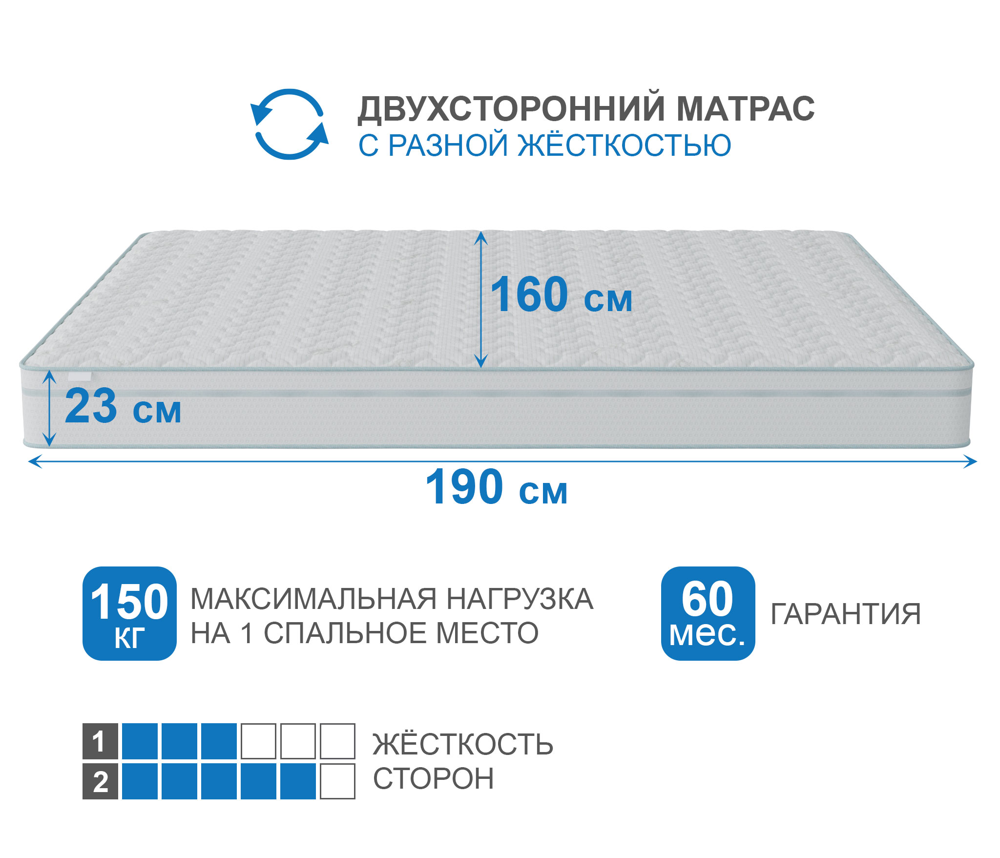 Одним из важнейших условий комфортного и здорового сна, является - правильная температура вокруг. Этот матрас создан для того, чтобы температура вашего спального места была идеальной для вас. известно, что для комфортного сна, желательна температура не много ниже температуры тела. Температура матраса полностью зависит от температуры находящегося на нем человека, в данном случае одна из сторон матраса сделана из ткани, нити которой состоят на 50% из термогеля, что позволяет выводить лишнее тепло за пределы зоны сна, при этом не охлаждая спальное место, а создавая именно правильно температуру для , а именно на 1-2 градуса ниже температуры тела, таким образом вы можете быть уверенны, что на матрасе с такой тканью вам никогда не будет жарко или холодно. Один из лучших матрасов в нашем ассортименте беспружинных матрасов. Основу матраса составляют 3 вида премиальной пены. Верхний слой - пена с памятью формы, которая создает воздушность и комфорт, точно повторяя и запоминая, каждый изгиб тела. Средний слой- слой пены, которая обладает исключительной упругостью, этот слой принимает на себя основную нагрузку и распределяет ее по всей поверхности, оказывая обратное давление лишь там где это необходимо. Нижний слой сделан из особожесткой и прочной пены, которая и позволяет матрасу выдерживать очень высокие нагрузки на спальное место (до 150 кг). Чехол матраса выполнен из особо мягкого трикотажа высокой плотности, итальнского производства, ткань чехла не впитывает запахи и легко отмывается.Бурлет (бок) матраса выполнен из мебельной ткани, которая придает ему законченный вид и увеличивает срок его службы. Чехол стегается на 15 мм пене. Матрас можно заказать в скрученном в рулон виде, данный вид упаковки значительно упрощает транспортировку, ведь в рулоне он поместиться, почти в любую, легковую машину. При выборе матраса следует помнить о том, что любой матрас не отвечает за правильность положения головы и шеи, их здоровье зависит от правильно подобранной ортопедической подушки. Для увеличения срока службы матраса рекомендуется его использование с защитным чехлом AquaStop. Возможен вариант поставки скрученным в рулон. |