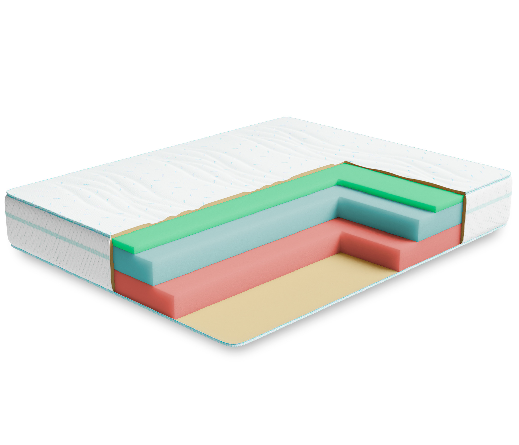 Один из лучших матрасов в нашем ассортименте беспружинных матрасов. Основу матраса составляют 3 вида премиальной пены. Верхний слой - пена с памятью формы, которая создает воздушность и комфорт, точно повторяя и запоминая, каждый изгиб тела. Средний слой- слой пены, которая обладает исключительной упругостью, этот слой принимает на себя основную нагрузку и распределяет ее по всей поверхности, оказывая обратное давление лишь там где это необходимо. Нижний слой сделан из особожесткой и прочной пены, которая и позволяет матрасу выдерживать очень высокие нагрузки на спальное место (до 150 кг). Чехол матраса выполнен из особо мягкого трикотажа высокой плотности, итальнского производства, ткань чехла не впитывает запахи и легко отмывается.Бурлет (бок) матраса выполнен из мебельной ткани, которая придает ему законченный вид и увеличивает срок его службы. Чехол стегается на 15 мм пене. Матрас можно заказать в скрученном в рулон виде, данный вид упаковки значительно упрощает транспортировку, ведь в рулоне он поместиться, почти в любую, легковую машину. При выборе матраса следует помнить о том, что любой матрас не отвечает за правильность положения головы и шеи, их здоровье зависит от правильно подобранной ортопедической подушки. Для увеличения срока службы матраса рекомендуется его использование с защитным чехлом AquaStop. Возможен вариант поставки скрученным в рулон.
