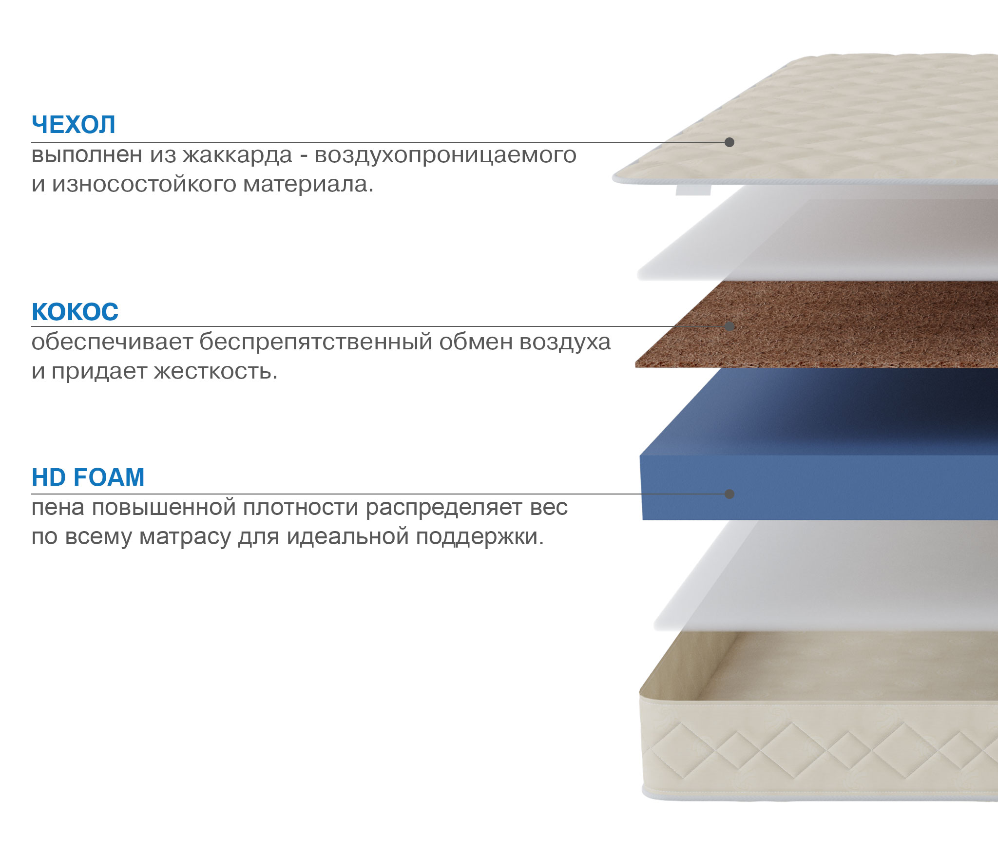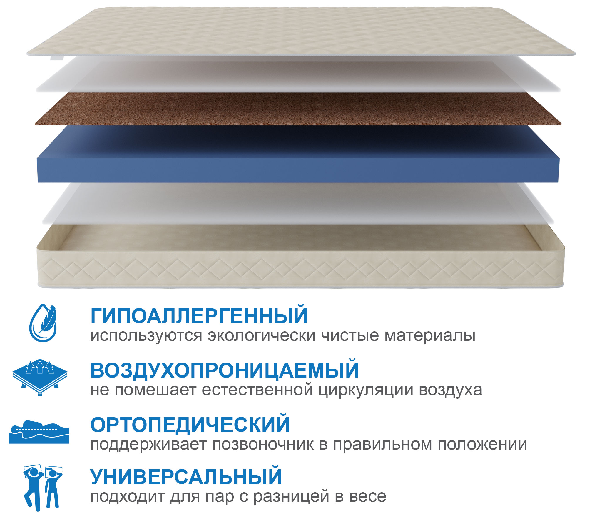 Чехол: Поликотон стеганный на синтепоне со спанбондом