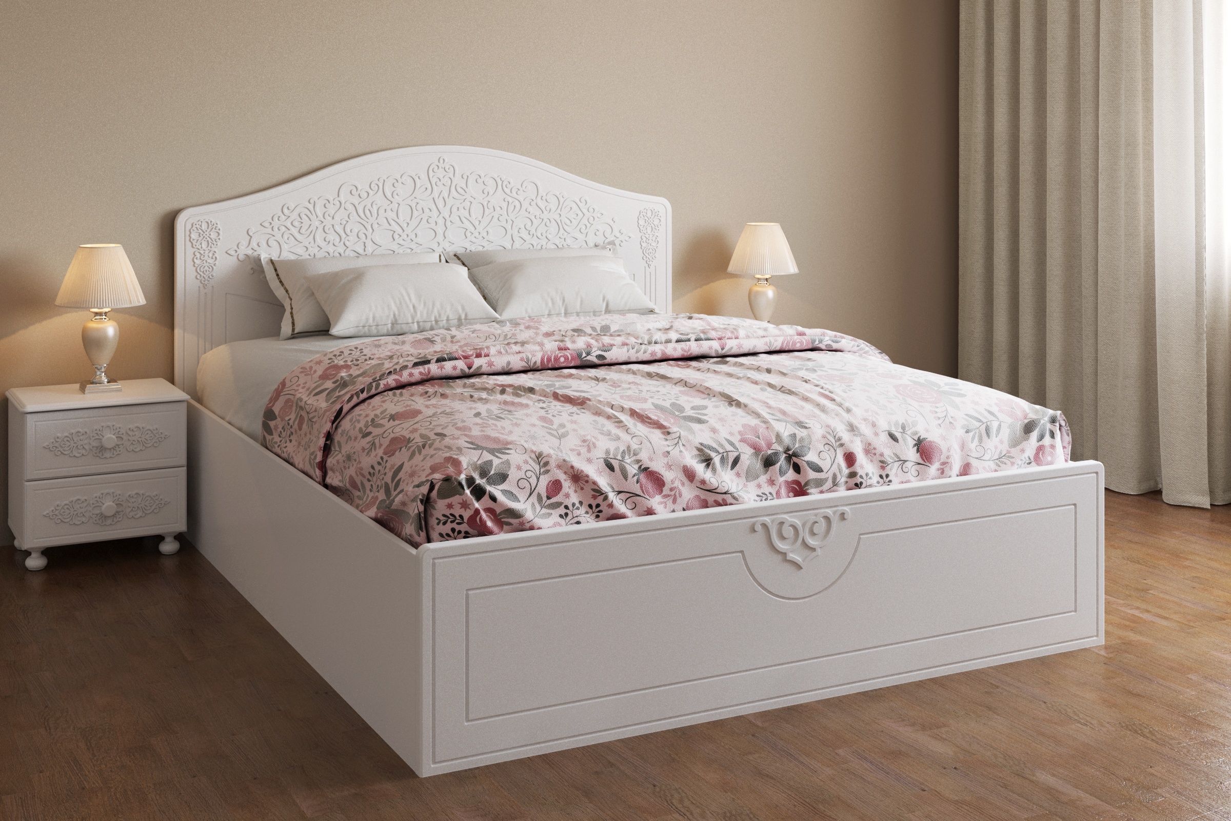 Кровать оснащена подъемным механизмом, обеспечивающим доступ в короб для хранения постельного белья.С двуспальной кроватью идеально подходит банкетка АС-34 для размещения рядом (в ногах).