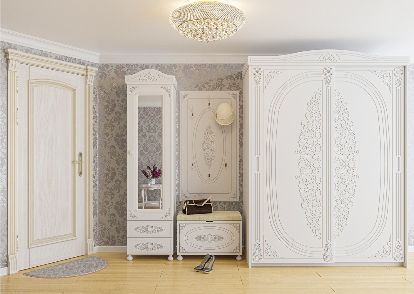 «Ассоль» - мягкий мерцающий глянец и эксклюзивный узор, повторяющийся на фасадах всех модулей идеален для создания нежного уютного интерьера спальни, гостиной, детской, прихожей.